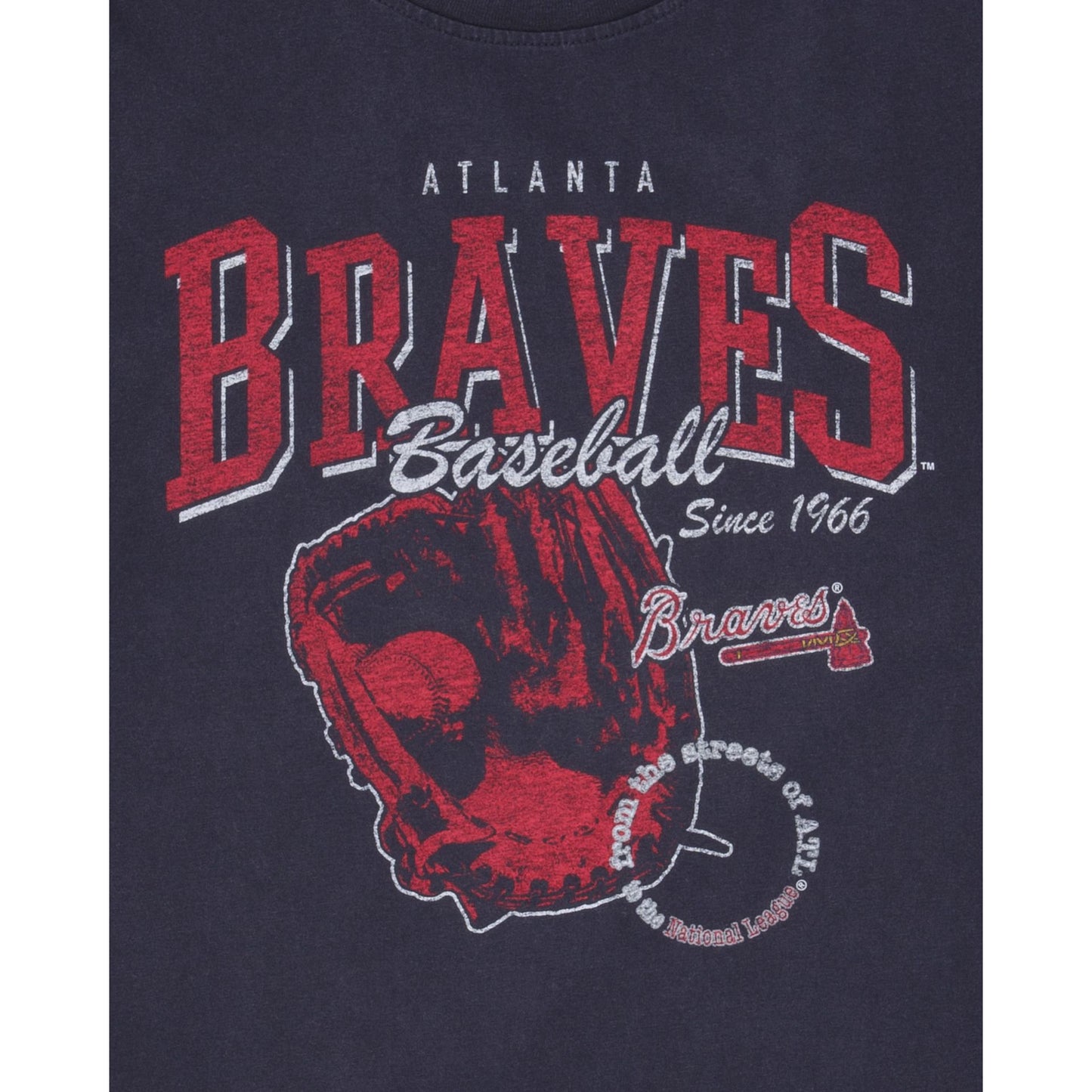 The Atlanta Braves Old School Sport T-Shirt features a distressed screen-printed Braves graphic at the front.
