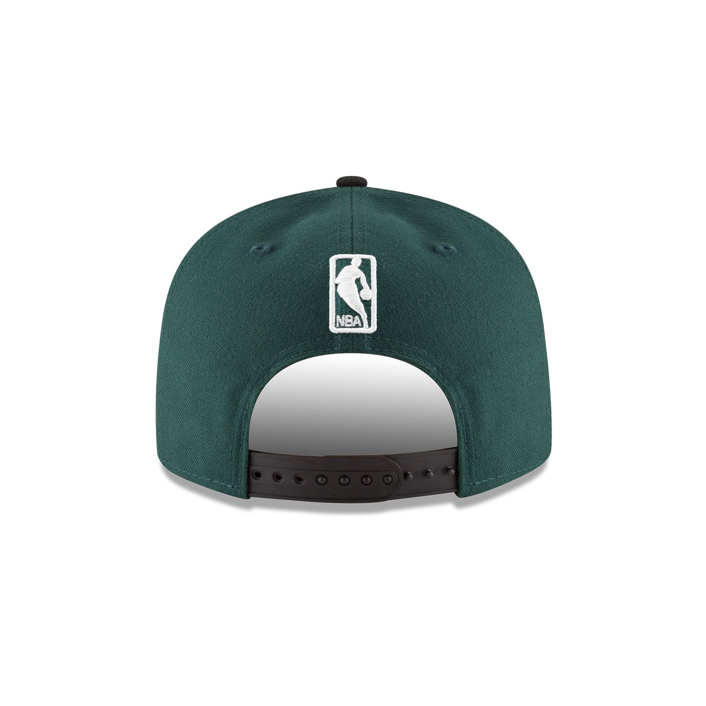 The Milwaukee Bucks Basic Two Tone 9FIFTY Snapback features an embroidered Bucks logo at the front panels with a matching NBA Logoman above a snapback closure at the rear.