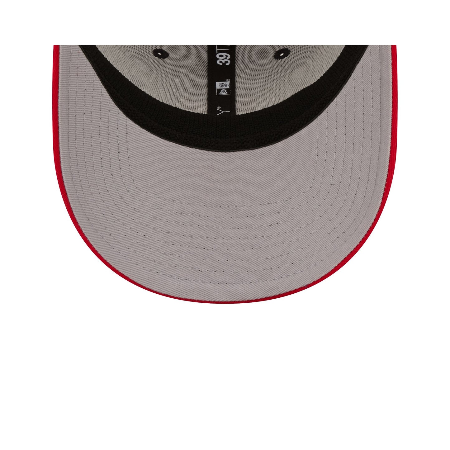 The U.S. Soccer Mesh 39THIRTY Stretch Fit Cap features an embroidered US Men's National Soccer Team logo and ONE NATION. ONE TEAM. wordmark at the front panels with a matching team logo at the rear.