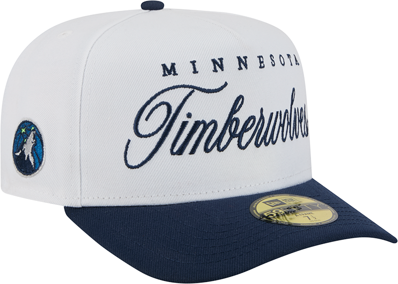 The Minnesota Timberwolves 2025 Draft 59FIFTY A-Frame Fitted Cap features an embroidered Timberwolves script wordmark at the front panels with a team logo at the right-wear side. Additional details include...