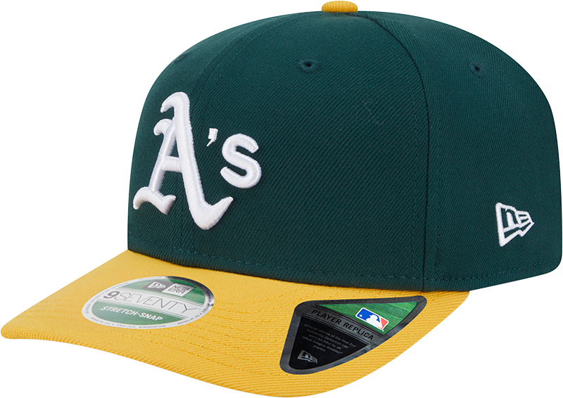 The Athletics Home 9SEVENTY Stretch-Snap features an embroidered Athletics logo at the front panels with a matching MLB Batterman logo above a snapback closure at the rear and a black...