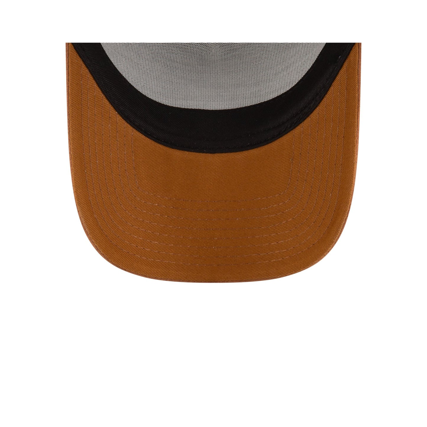 The 2024 Austin Race Special Oracle Red Bull Racing 9FORTY A-Frame Snapback features a woven Red Bull tag at the front panels against a denim fabrication. Additional details include a faux suede visor and mesh back with a snapback closure at the rear.