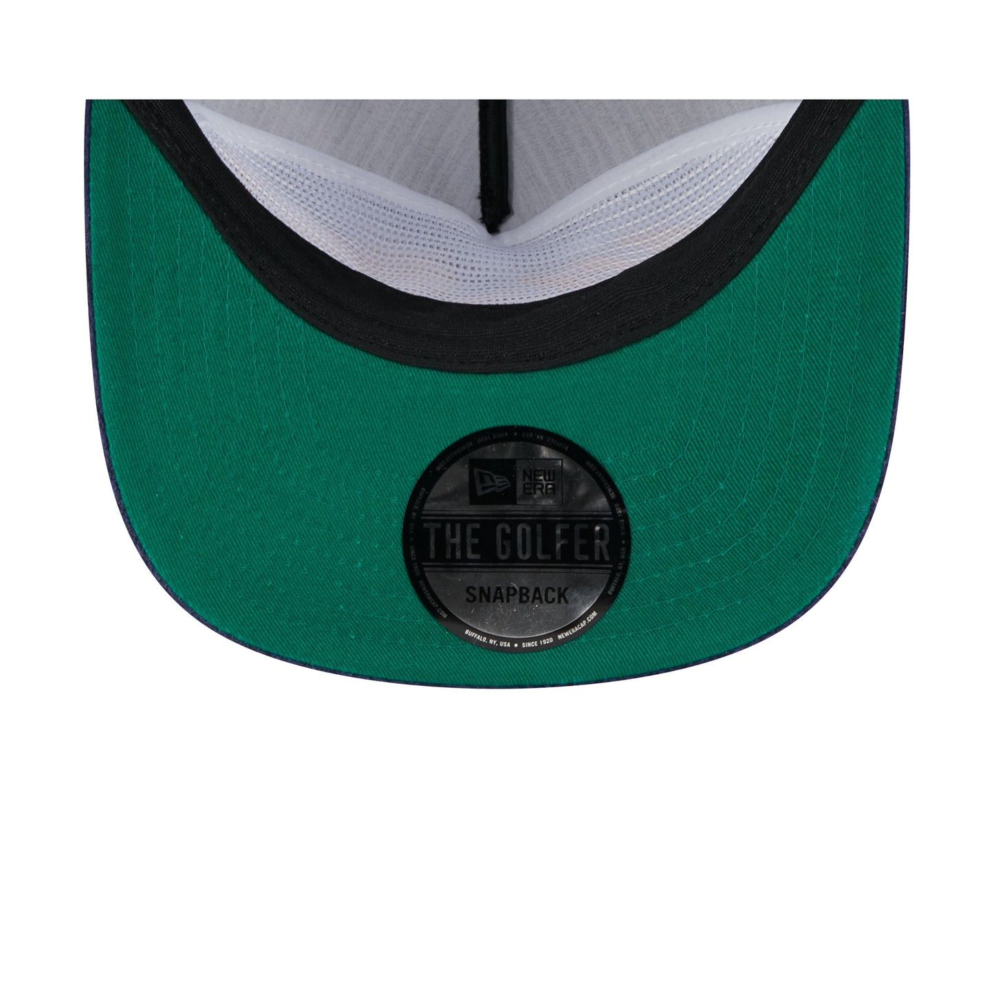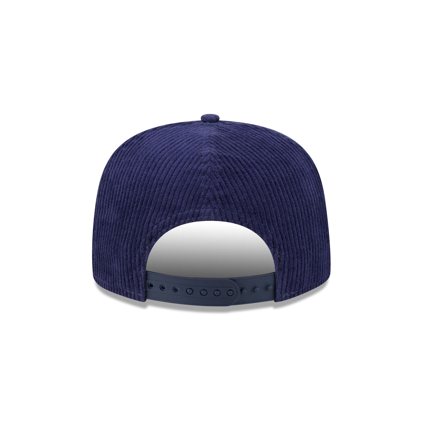 The 2024 NBA All-Star Game Golfer features an embroidered NBA All-Star Game wordmark at the front panels with a matching Indy '24 patch at the right-wear side, a navy corduroy fabrication, a green undervisor, and a snapback closure at the rear.