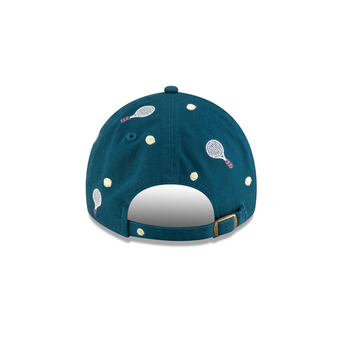 The 2025 Australian Open Cadet Blue Casual Classic Adjustable Cap features an embroidered Australian Open logo at the front panels with tennis rackets throughout and an adjustable metal D-Ring closure at the rear.