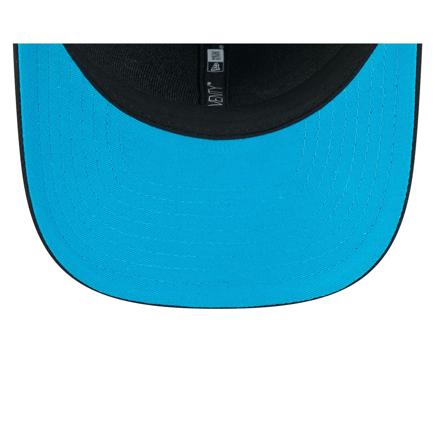 The 2025 Miami Race BWT Alpine F1 Team Blue Black 9SEVENTY Stretch-Snap features an embroidered Alpine logo at the front panels with a team patch at the right-wear side and a snapback closure at the rear.