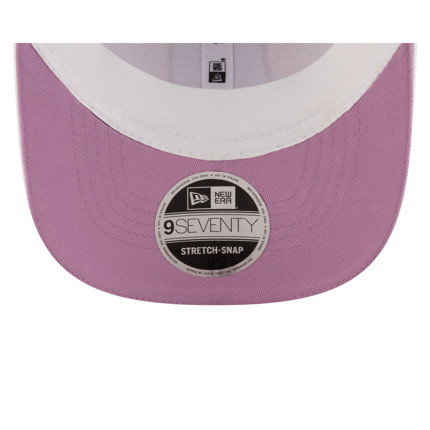 The 2025 Monaco Race Special Visa Cash App Racing Bulls 9SEVENTY Trucker features an embroidered Bulls patch at the front panels with a pink pipe lined visor and an adjustable snapback closure at a mesh rear.