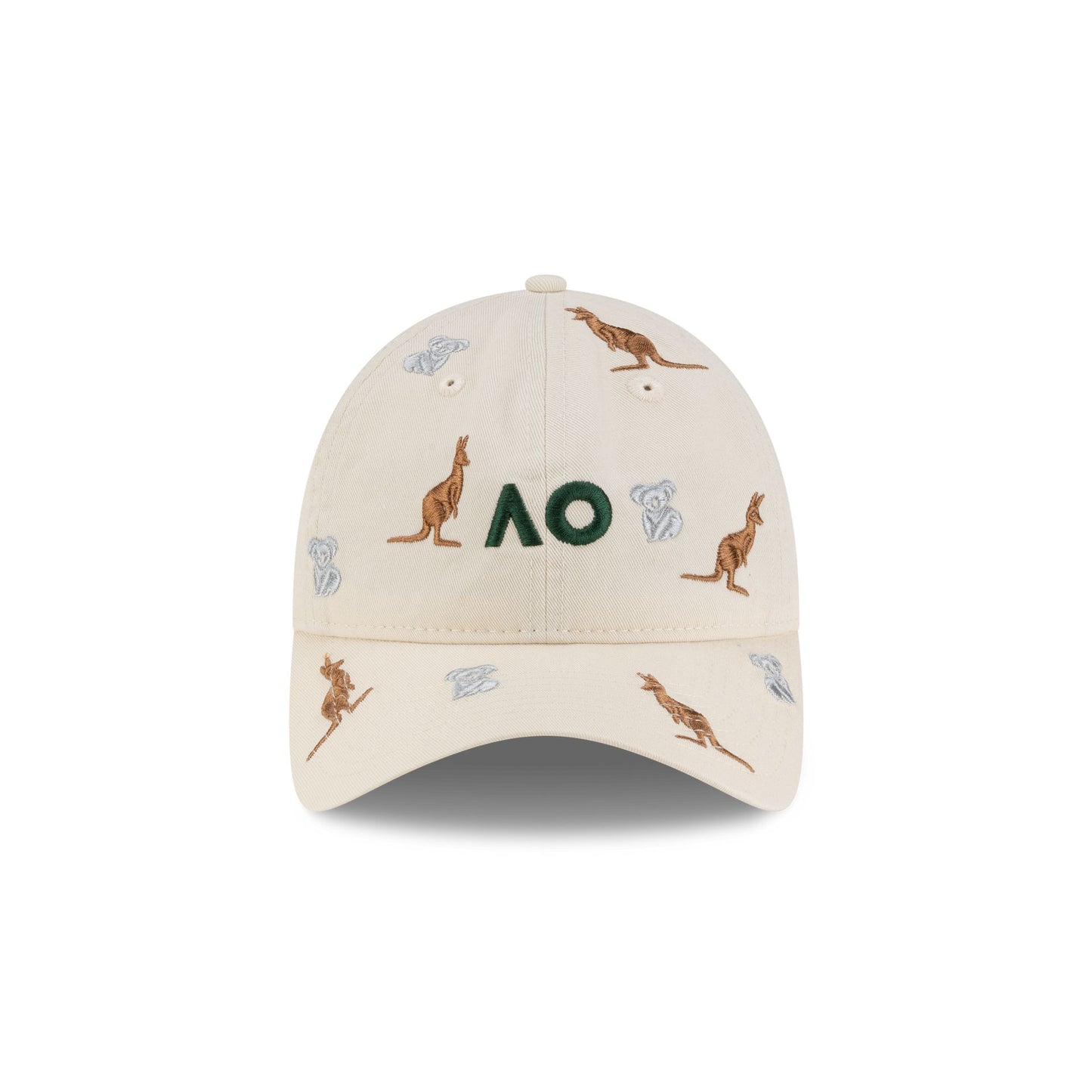 The 2026 Australian Open Icons 9TWENTY Adjustable Cap features an embroidered Australian Open logo at the front panels with kangaroos and koalas throughout. Additional details include an adjustable D-Ring closure at the rear.