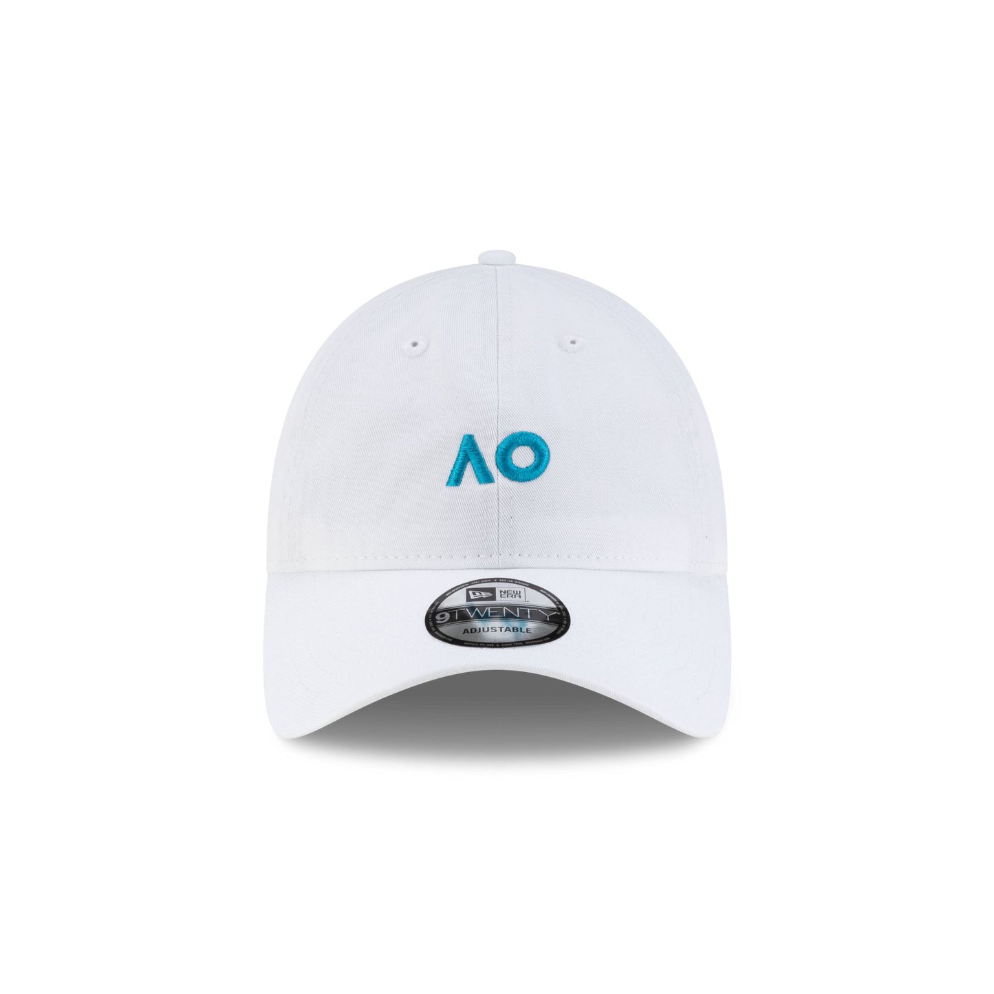 The 2026 Australian Open Mini Logo White 9TWENTY Adjustable Cap features an embroidered mini Australian Open logo at the front panels with an adjustable D-Ring closure at the rear.
