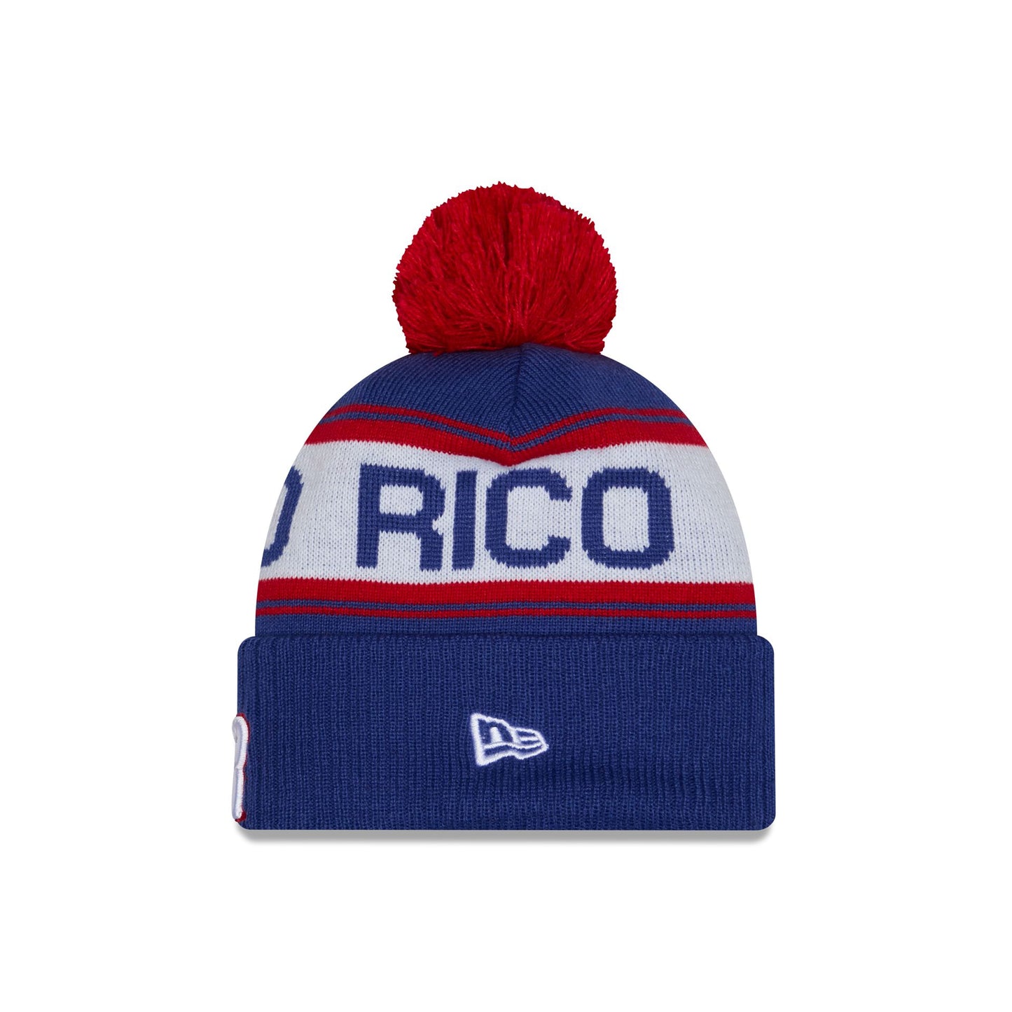 Wear what the players wear with the official on-field cap of the 2026 World Baseball Classic! The 2026 World Baseball Classic Puerto Rico Pom Knit features an embroidered Puerto Rico logo at the front with a matching team flag at the right-wear side. Additional details include World Baseball Classic logo at the rear with a team wordmark at the crown and a one-time removable pom.