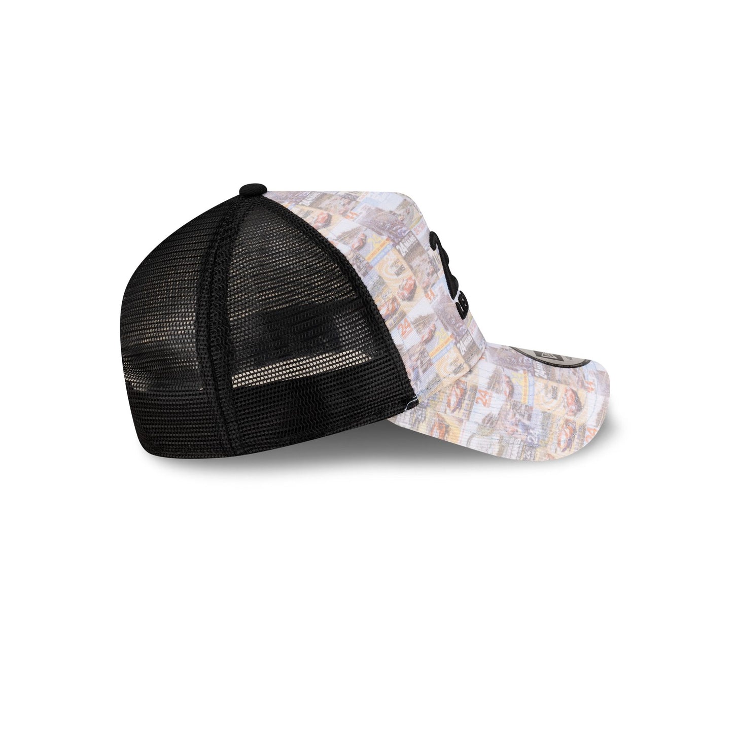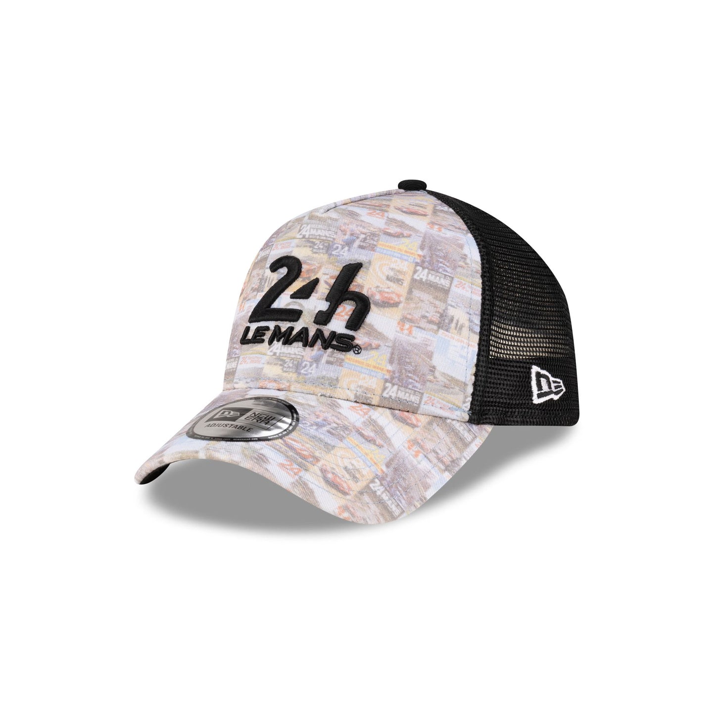 The 24 Hours of Le Mans Photo 9FORTY A-Frame Trucker features an embroidered 24h Le Mans logo at the front panels against a print graphic. Additional details include snapback closure at a mesh rear.