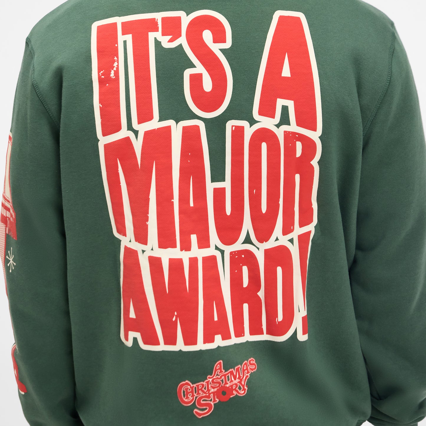 The A Christmas Story Green Hoodie features a screen-printed A Christmas Story graphic at the front, left arm, and rear. Additional details include kangaroo pockets and adjustable drawstrings at the hood.