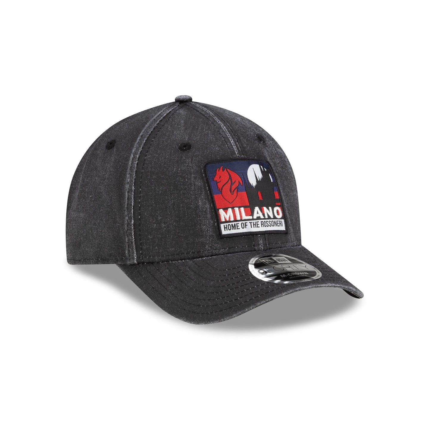 The AC Milan City Pack 9FORTY M-Crown Snapback features an embroidered AC Milan Milano graphic patch at the front panel with a team tag on an adjustable snapback closure at the rear.