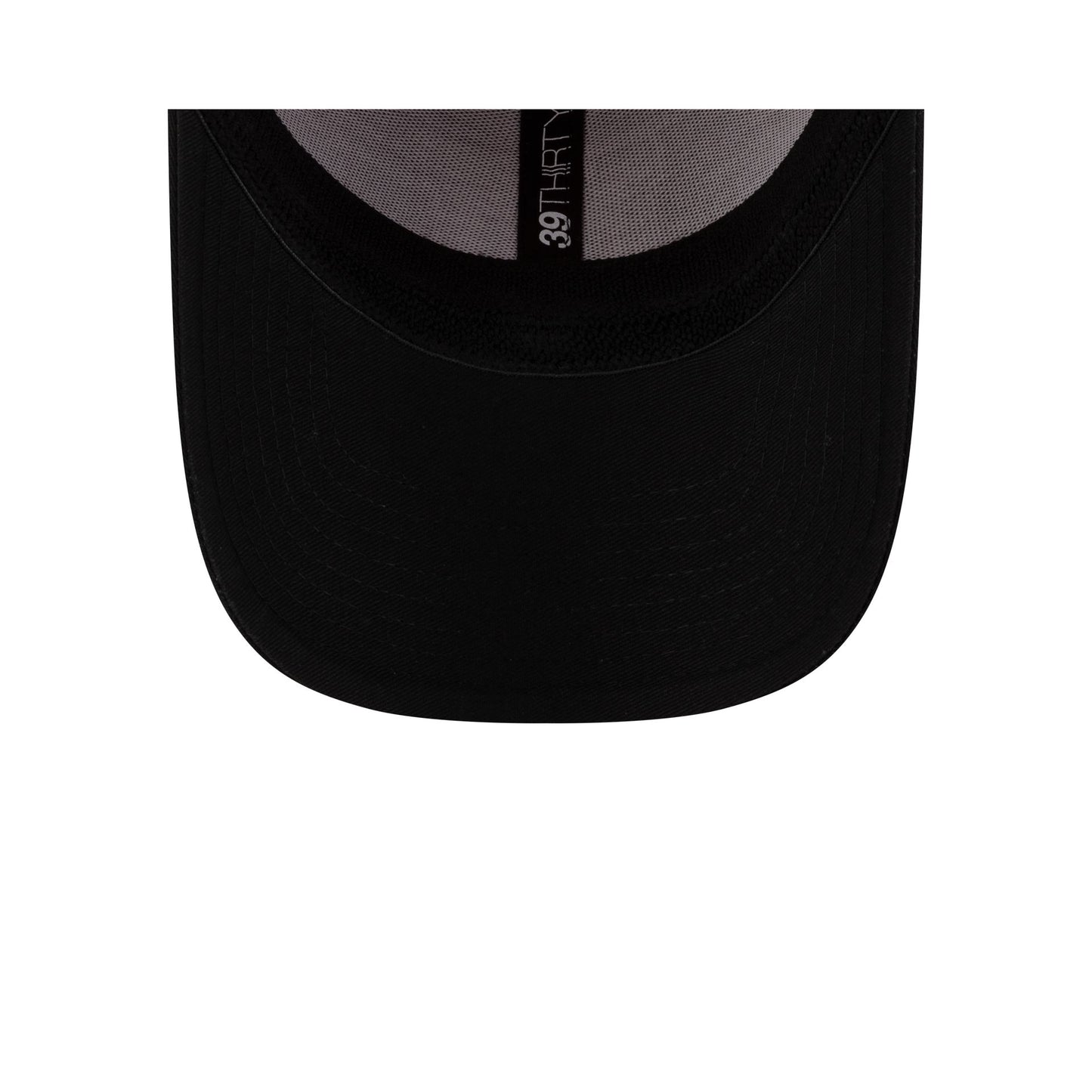The AC Milan M Logo Scarlet 39THIRTY Stretch Fit Cap features an embroidered Milan logo at the front panels with a Historic team logo at the right-wear side, a black visor, and a woven team logo tag at the rear.