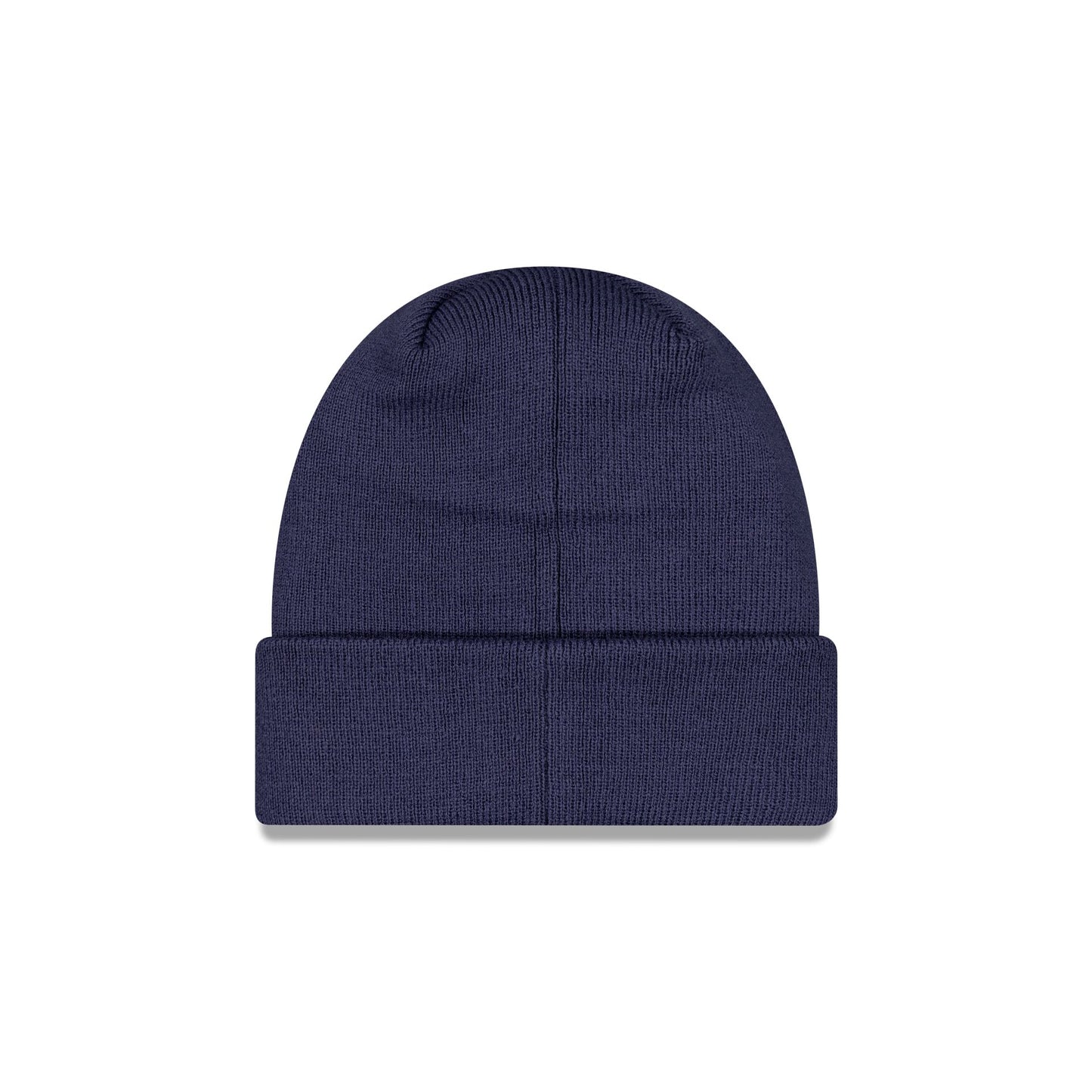 The AC Milan Seasonal Navy Cuff Knit features an embroidered Milan logo at the front with a matching New Era Flag at the left-wear side.