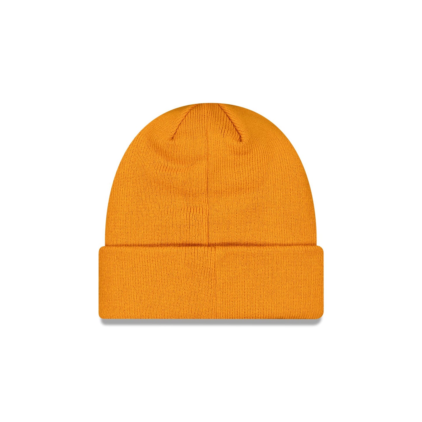 The AC Milan Seasonal Orange Wordmark Cuff Knit features an embroidered Milan 1899 wordmark at the front with a matching New Era Flag at the left-wear side.