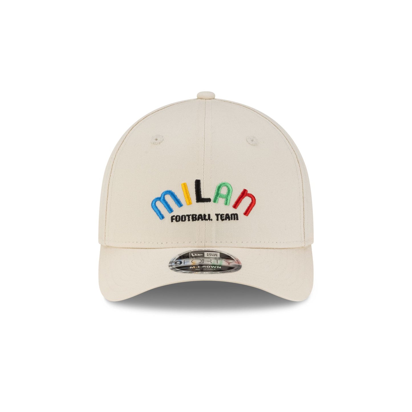 The AC Milan Wordmark Chrome 9FORTY M-Crown Snapback features an embroidered Milan multicolor wordmark at the front panels with a team tag at an adjustable D-Ring closure at the rear.