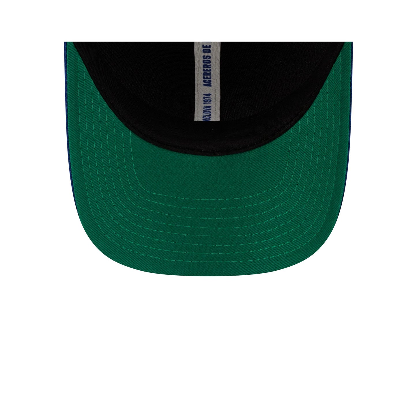 The Acereros de Monclova Retro 9FORTY M-Crown Snapback features an embroidered Acereros retro logo at the front panels with a 100th Anniversary LMB logo above an adjustable snapback closure at the rear.
