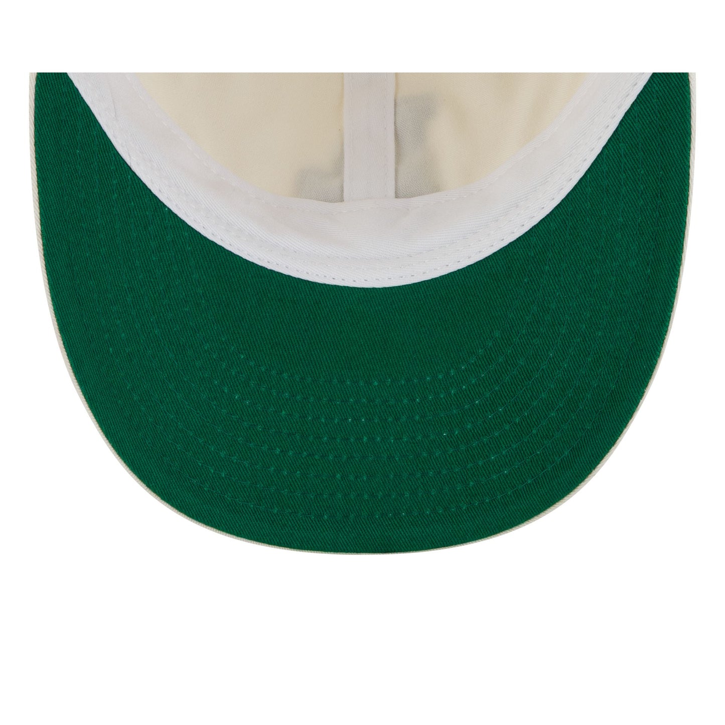 The Aimé Leon Dore Los Angeles Dodgers Chrome White Retro Crown 9FIFTY Strapback features an embroidered Dodgers logo at the front panels with a Aimé Leon Dore script at the right-wear side. Additional details include an adjustable D-Ring closure at the rear and a green undervisor.