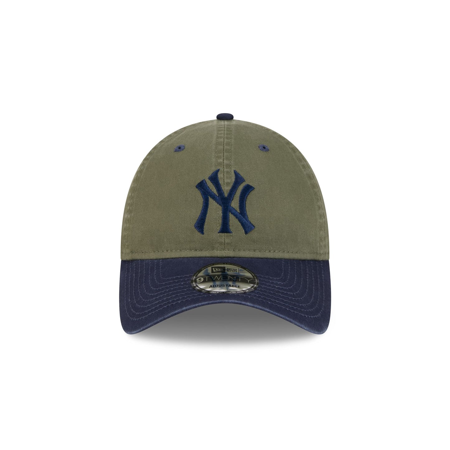 The Aimé Leon Dore New York Yankees Olive 9TWENTY Adjustable Cap features an embroidered Yankees logo at the front panels with a Aimé Leon Dore script at the right-wear side. Additional details include a matching MLB Batterman logo to the left of an adjustable D-Ring closure at the rear with a navy visor and a gray undervisor.