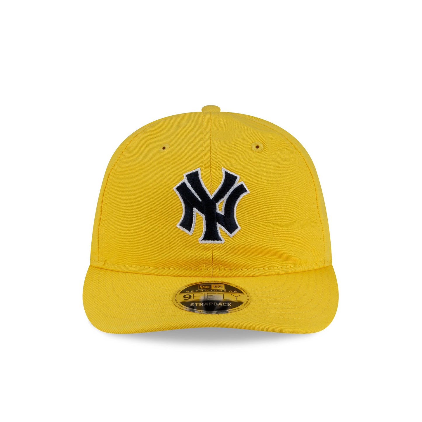 The Aimé Leon Dore New York Yankees Yellow Retro Crown 9FIFTY Strapback features an embroidered Yankees Cooperstown logo at the front panels with a Aimé Leon Dore script at the right-wear side. Additional details include an adjustable D-Ring closure at the rear and a green undervisor.