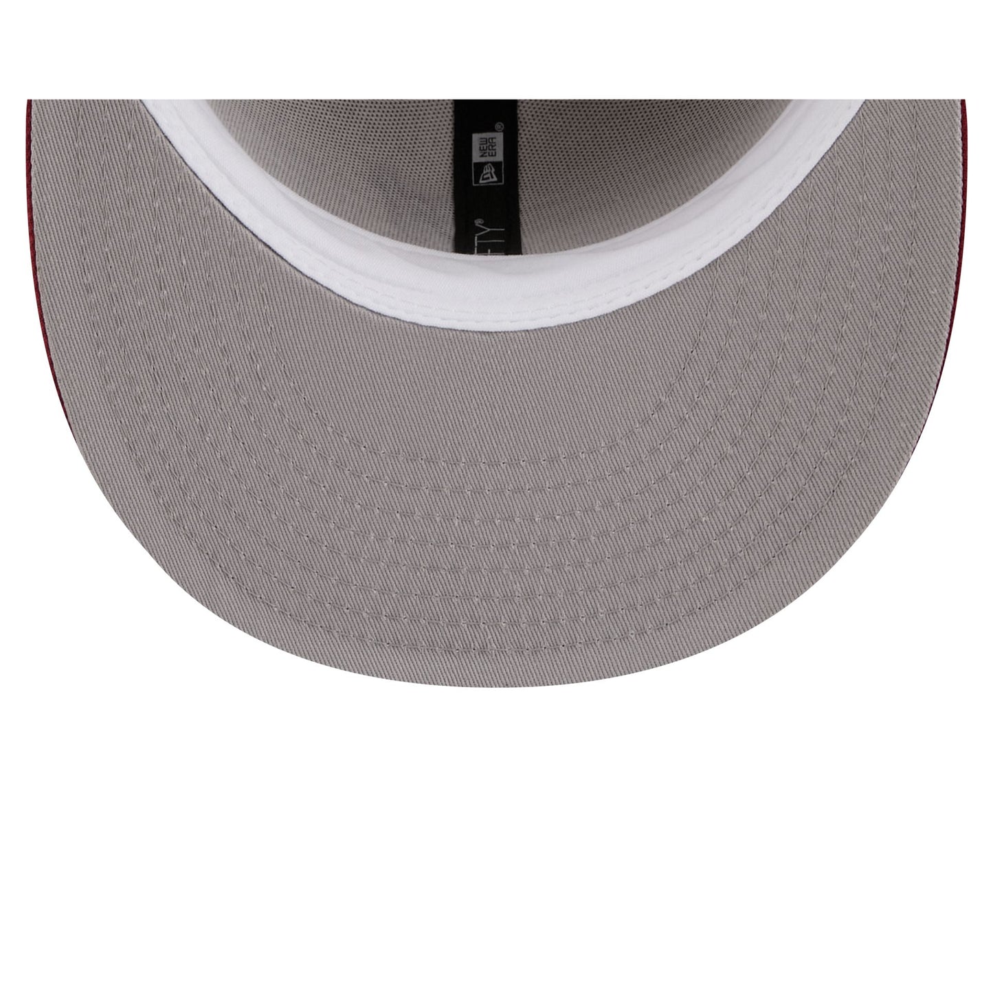The Alabama Crimson Tide Collegiate Two-Tone Chrome 59FIFTY Fitted Cap features an embroidered Crimson Tide logo at the front panels with an alternate team logo at the rear. Additional details include a 2024 NCAA Final Four patch at the right-wear side with a maroon visor and a gray undervisor.