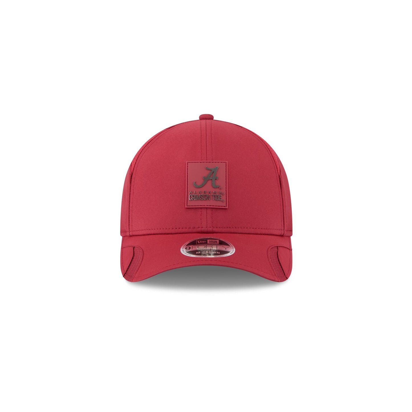 The Alabama Crimson Tide Hot Weather Kids 9FORTY M-Crown Snapback features a sewn-down silicone Crimson Tide logo patch at the front panels with a water-repellent quill tech fabrication throughout and a quick-dry cushioned sweatband to absorb moisture. Additional details include a team wordmark on a soft silicone snapback closure at the rear with team color silicone transfer details at the undervisor.