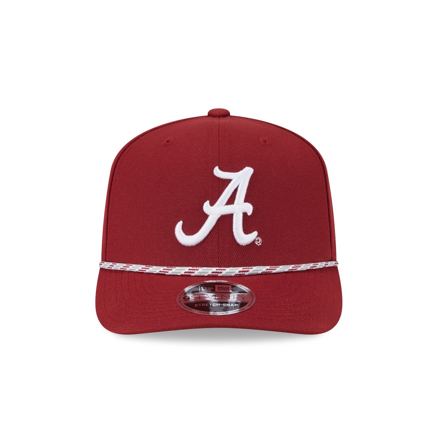 The Alabama Crimson Tide Multicolor Rope 9SEVENTY Stretch-Snap features an embroidered Crimson Tide logo at the front panels with a rope at the visor and an adjustable stretch-snap closure at the rear.