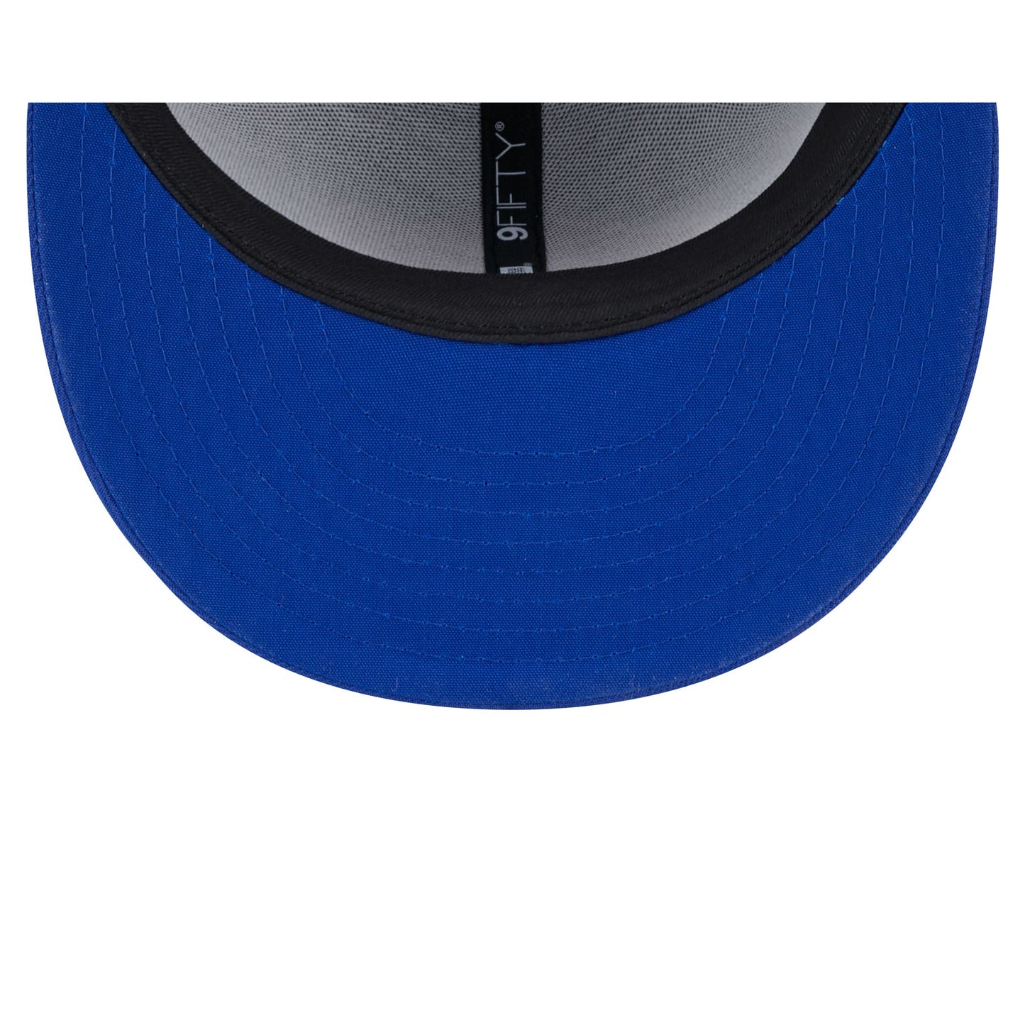The Alpha Industries x Buffalo Bills Historic Blue 9FIFTY Snapback features a chainstitch embroidered Bills logo at the front panels with a matching team logo at the right-wear side, a signature Alpha Industries red ribbon at the left-wear side, and a snapback closure at the rear.