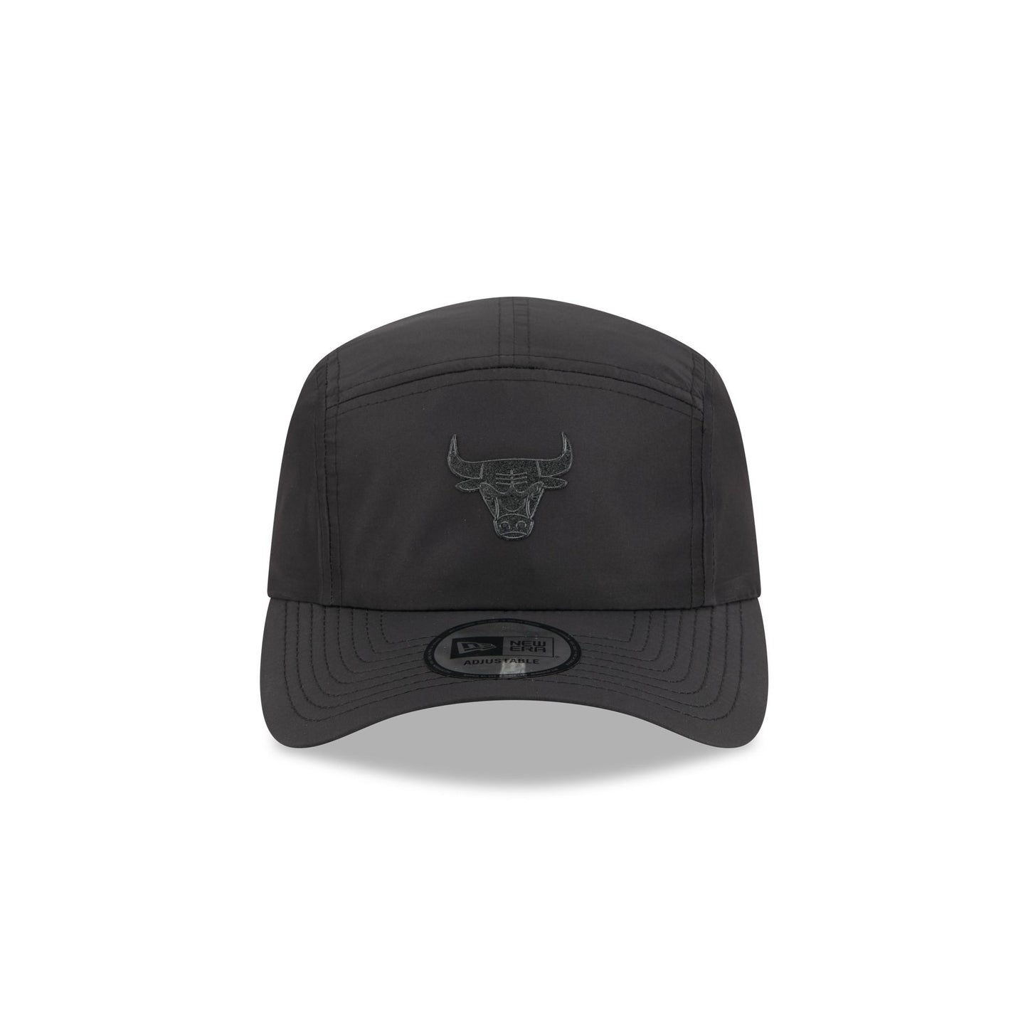 The Alpha Industries x Chicago Bulls Black Runner Adjustable Cap features a silicone Bulls logo at the front with a woven New Era Cap x Alpha Industries tag above an adjustable Alpha Industries red ribbon strapback closure at the rear.