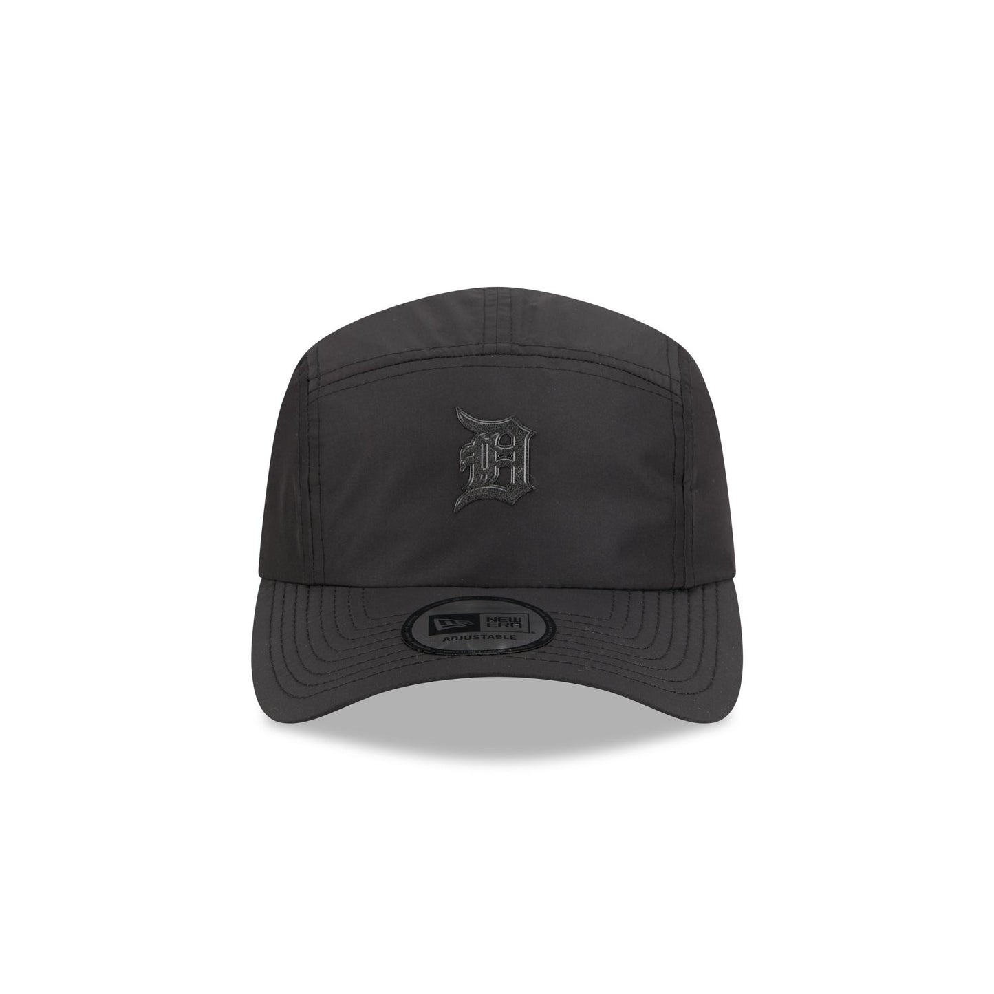 The Alpha Industries x Detroit Tigers Black Runner Adjustable Cap features a silicone Tigers logo at the front with a woven New Era Cap x Alpha Industries tag above an adjustable Alpha Industries red ribbon strapback closure at the rear.