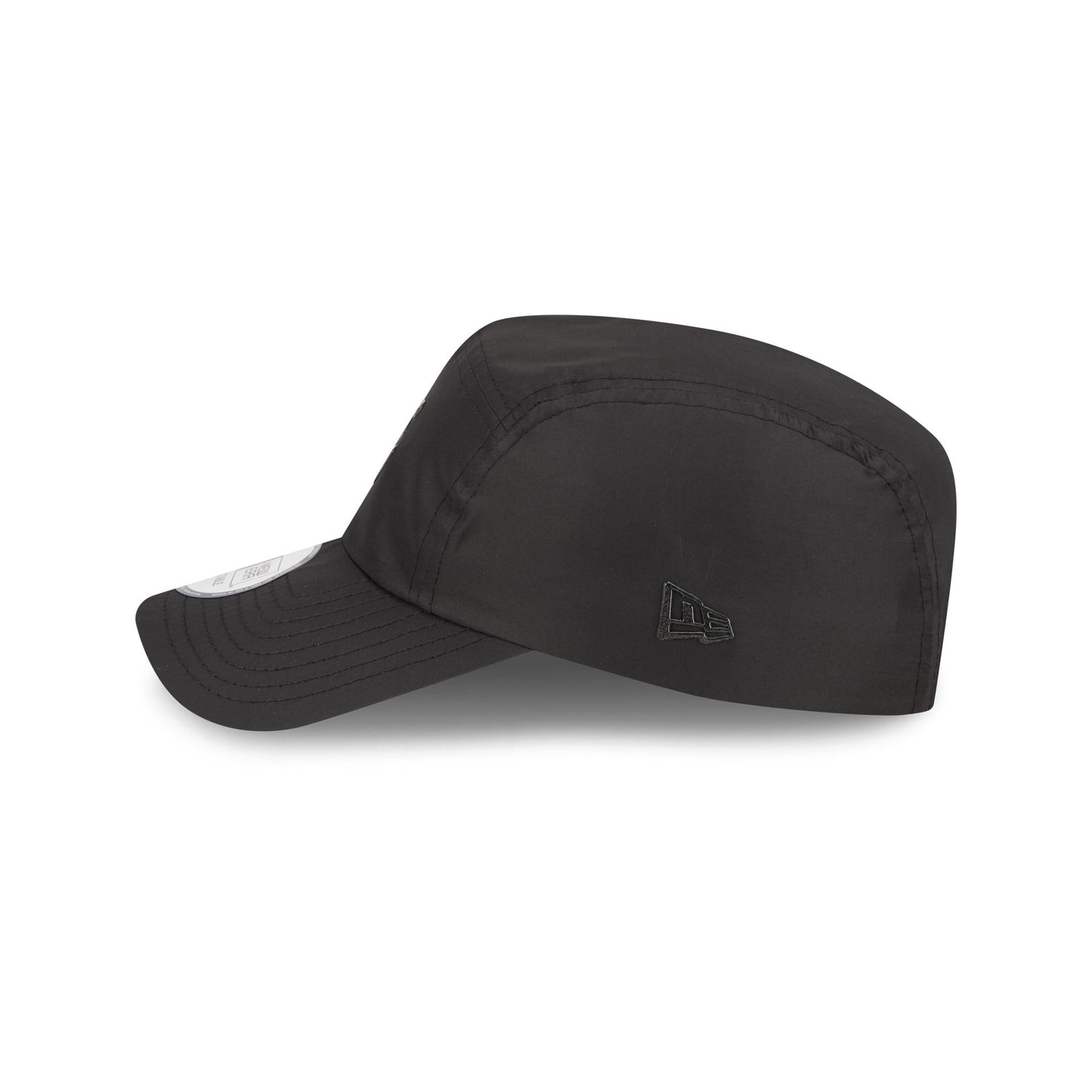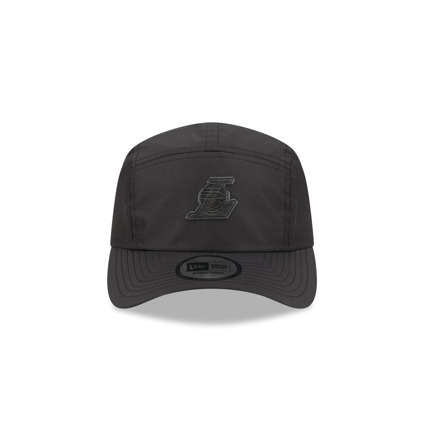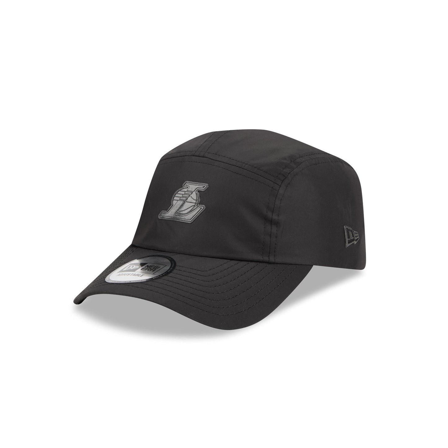 The Alpha Industries x Los Angeles Lakers Black Runner Adjustable Cap features a silicone Lakers logo at the front with a woven New Era Cap x Alpha Industries tag above an adjustable Alpha Industries red ribbon strapback closure at the rear.