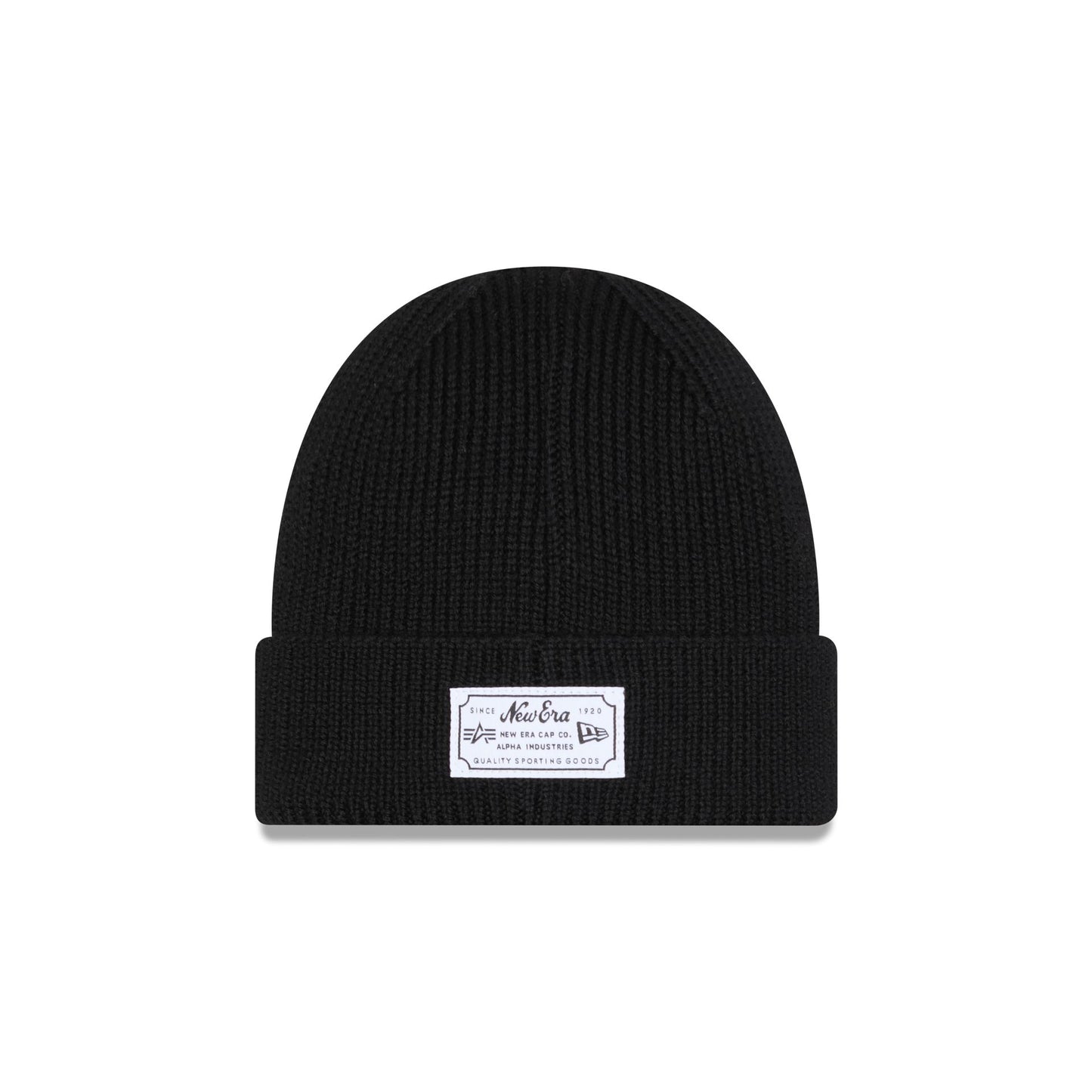 The Alpha Industries x Milwaukee Brewers Black Cuff Knit features an embroidered black and white Brewers logo at the front with the signature Alpha Industries red ribbon at the crown and a woven New Era Cap x Alpha Industries tag at the rear.