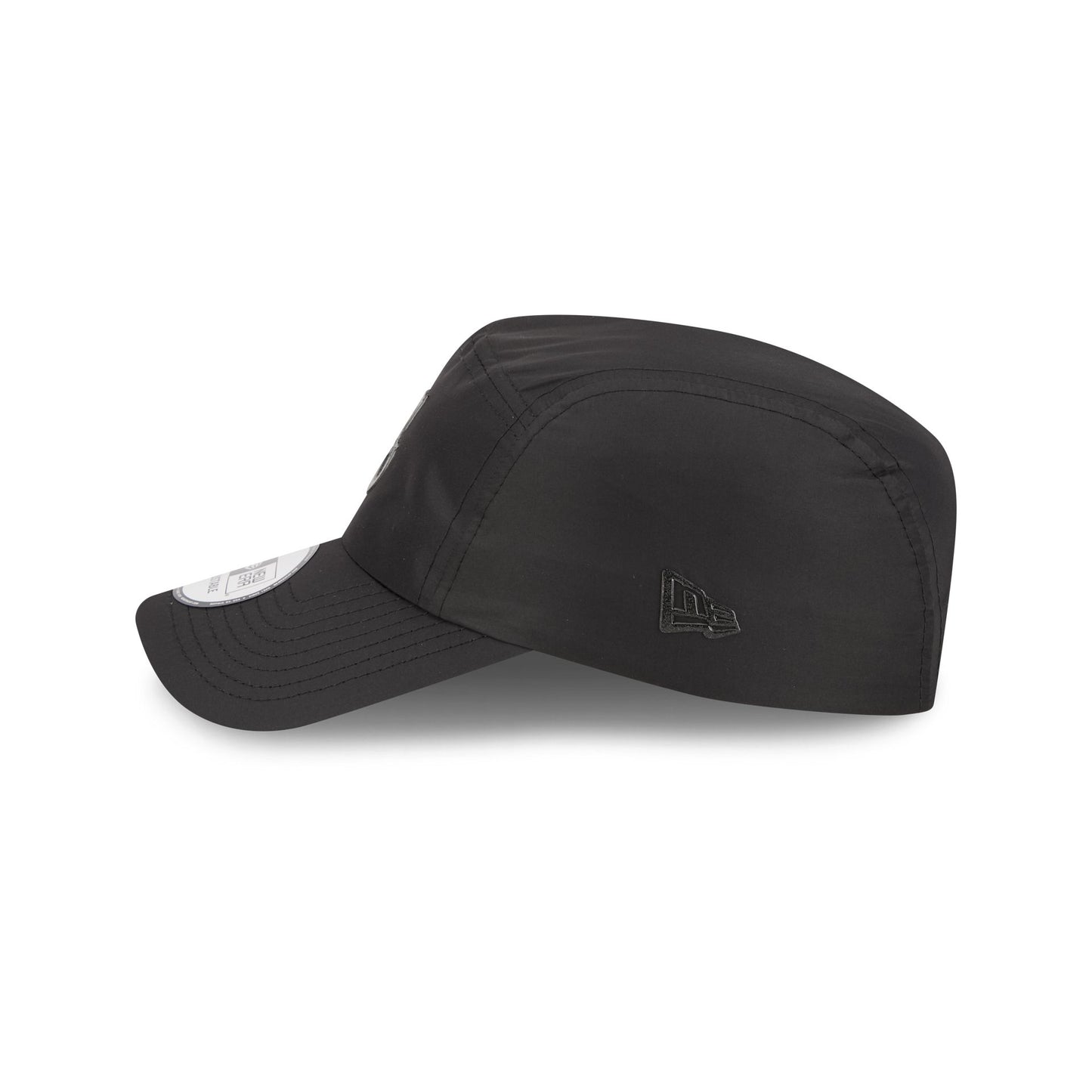 The Alpha Industries x Seattle Mariners Black Runner Adjustable Cap features a silicone Mariners logo at the front with a woven New Era Cap x Alpha Industries tag above an adjustable Alpha Industries red ribbon strapback closure at the rear.