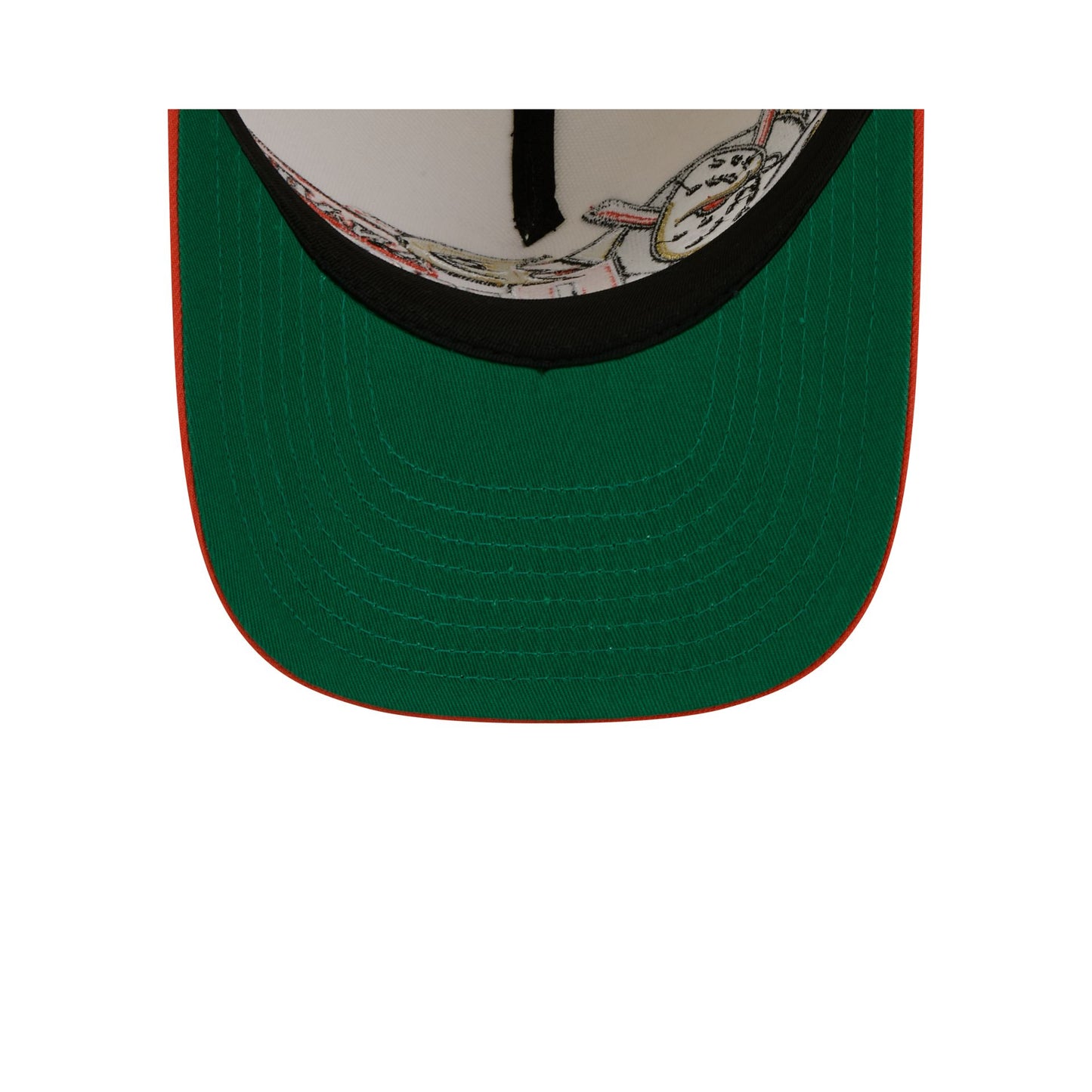 The Anaheim Ducks Chrome White Classic 9FIFTY A-Frame Snapback features an embroidered Ducks graphic at the front panels with an adjustable snapback closure at the rear and a green undervisor.