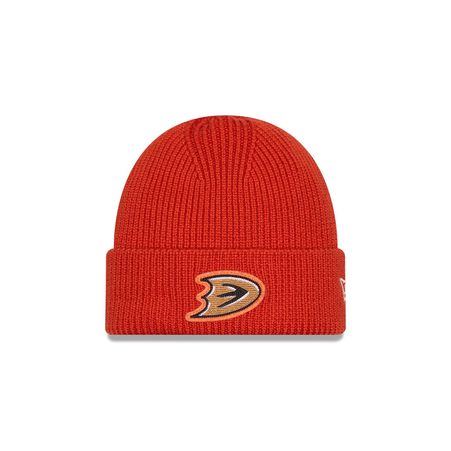 The Anaheim Ducks Short Skull Cuff Knit Beanie features an embroidered Ducks logo at the front cuff with the NHL Shield logo at the rear.