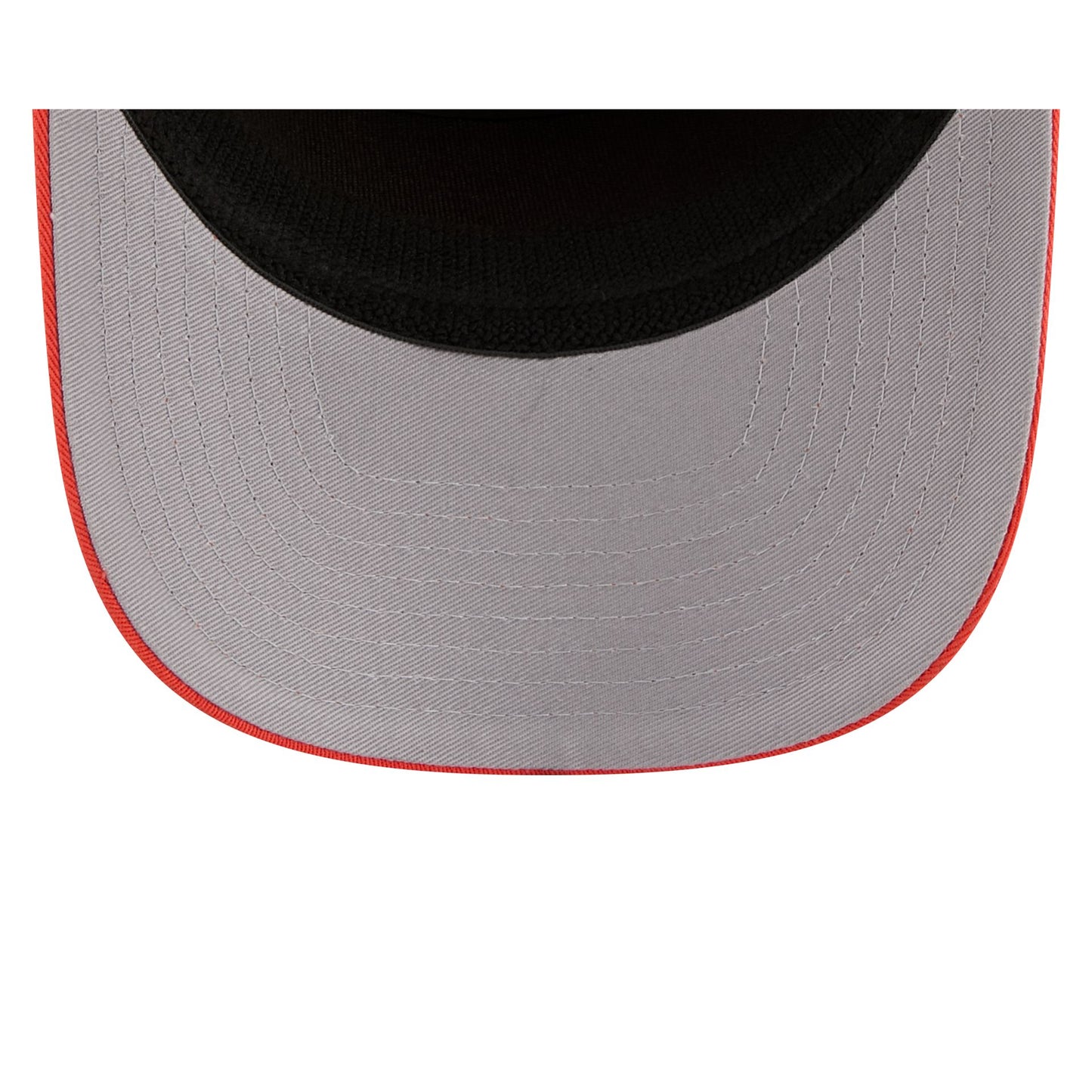 The Anaheim Ducks Split Panel 9SEVENTY Stretch-Snap features an embroidered Ducks logo at the front panel with a split crown construction and a rope at the visor. Additional details include an adjustable stretch-snap closure at the rear and a gray undervisor.