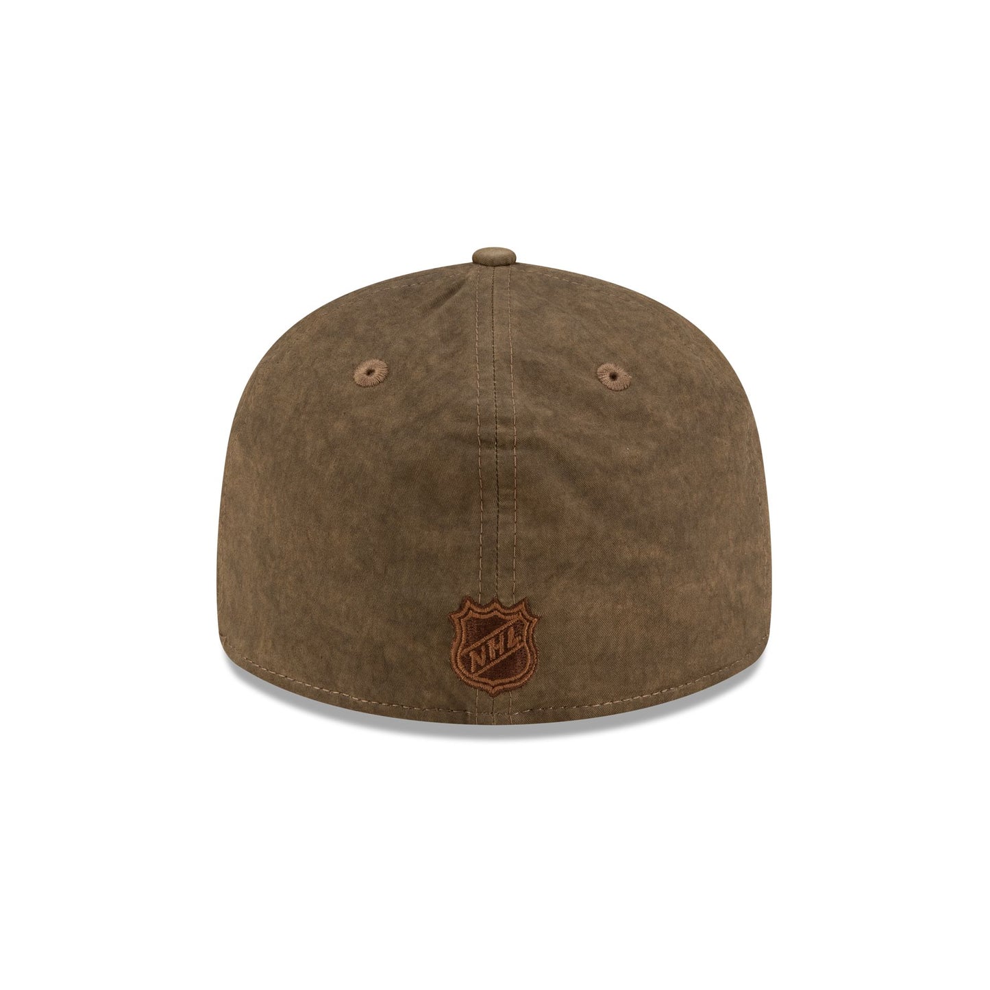 The Anaheim Ducks Utility Linen Retro Crown 59FIFTY Fitted Cap features an embroidered Ducks logo at the front panels with a team patch at the right-wear side. Additional details include a faux leather visor and the NHL Shield logo at the rear.