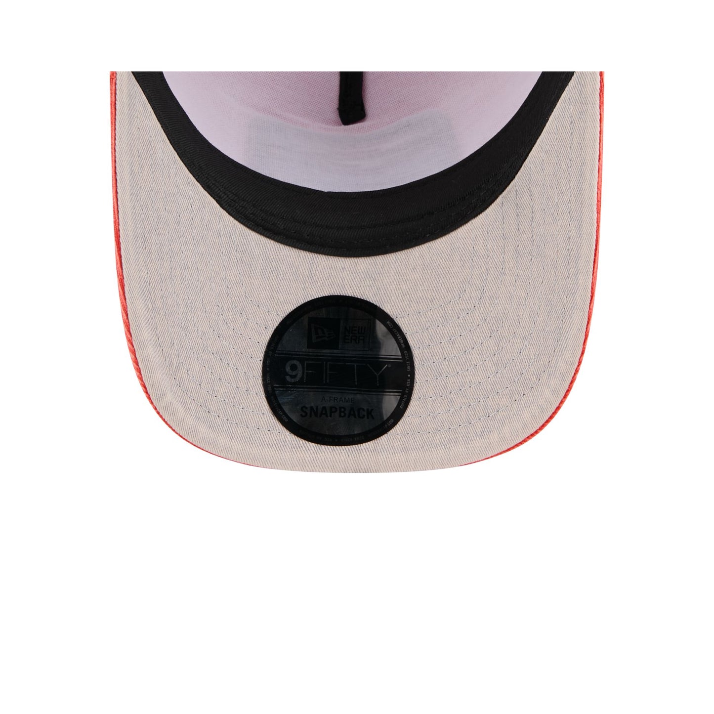 The Anaheim Ducks Vintage Landscape 9FIFTY A-Frame Trucker features an embroidered Ducks Vintage Landscape patch at the front panels with a team logo at the right-wear side. Additional details include an adjustable snapback closure at the rear and a gray undervisor.