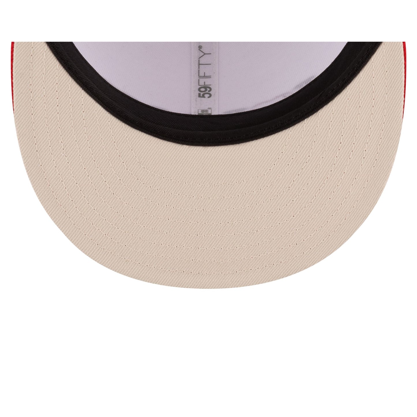 The Anchorman I Love Lamp 59FIFTY Fitted Cap features an embroidered "I Love Lamp" graphic at the front panels with an Anchorman wordmark at the rear and a tan undervisor.