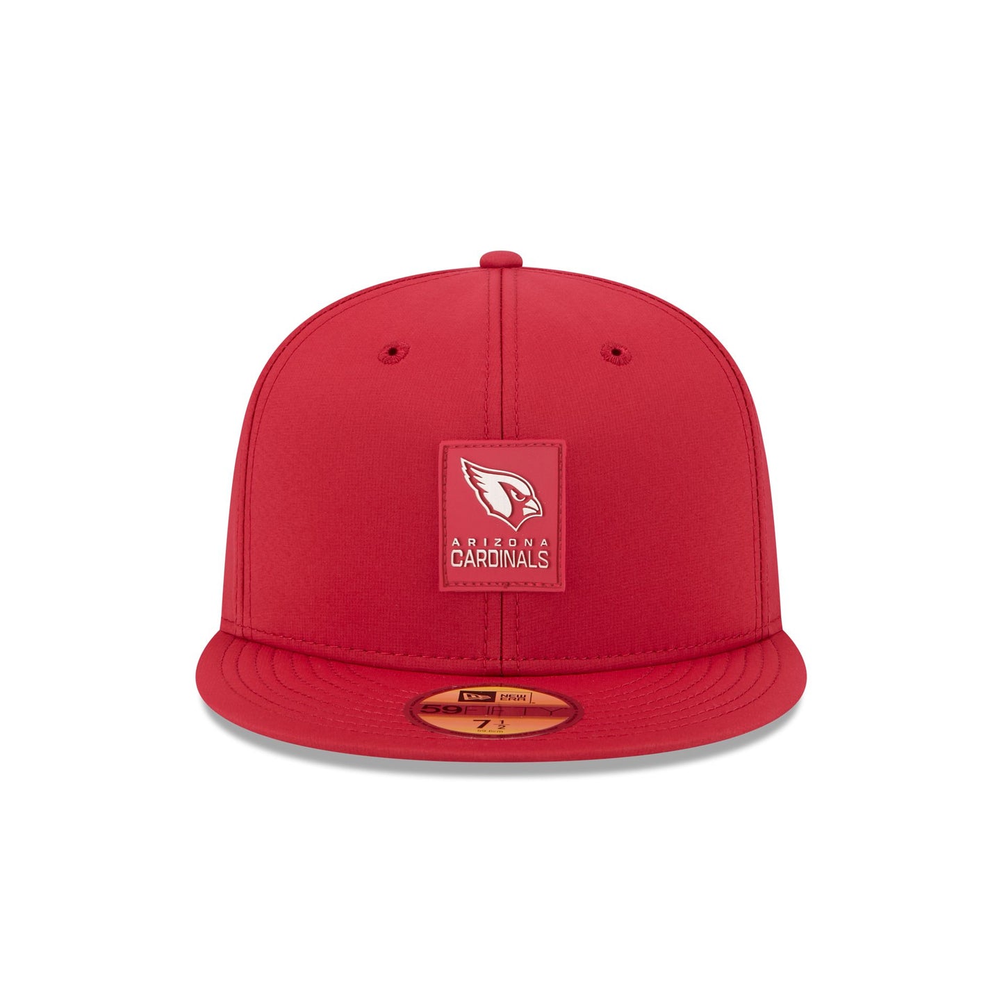 The Arizona Cardinals 2025 Sideline Hot Weather 59FIFTY Fitted Cap features a sewn-down silicone Cardinals logo patch at the front panels with the Official NFL Shield logo at the rear. The cap has a water-repellent quill tech fabrication throughout, with a quick-dry cushioned sweatband to absorb moisture. The undervisor is accented with a silicone transfer in the team’s colors.