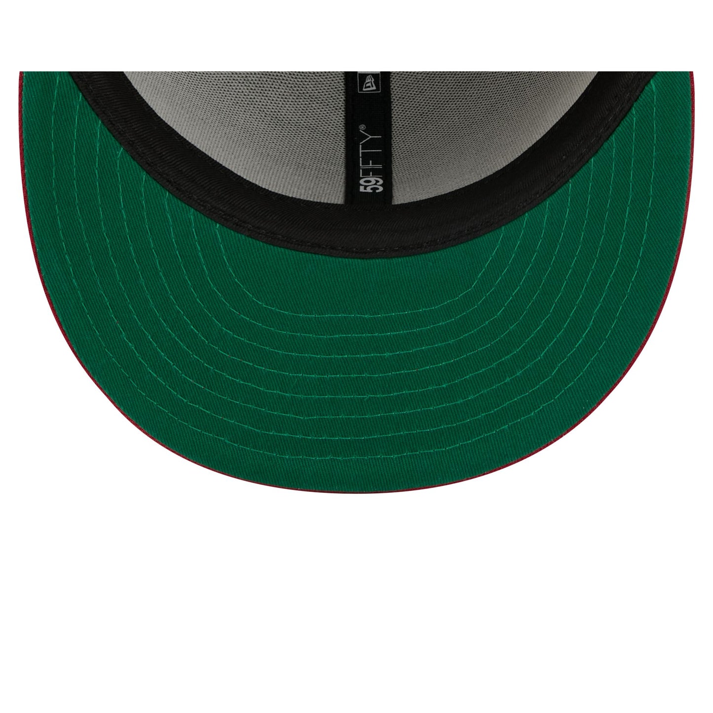 The Arizona Cardinals Heather Gray Wool 59FIFTY Fitted Cap features an embroidered Cardinals Historic logo and conference pin at the front panels against a wool fabrication throughout. Additional details include a helmet graphic at the right-wear side, an NFL Shield logo at the rear, and a green undervisor.