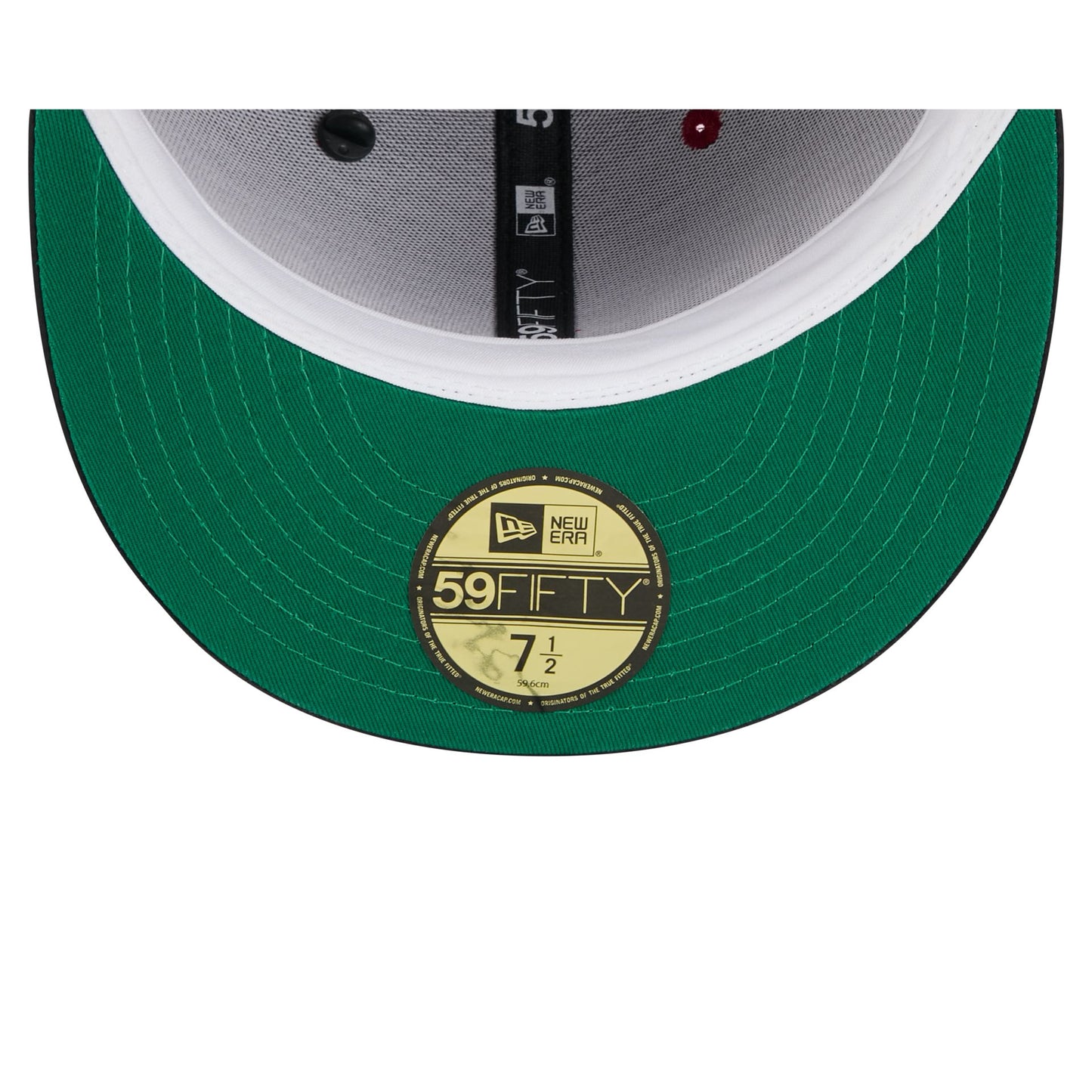 The Arizona Cardinals Spring Satin 59FIFTY Fitted Cap features an embroidered Cardinals wordmark at the front panels with a New Era pin at the top left panel and an NFL Shield logo at the rear. Additional details include a satin fabrication throughout, a logo at the right-wear side, and a green undervisor.