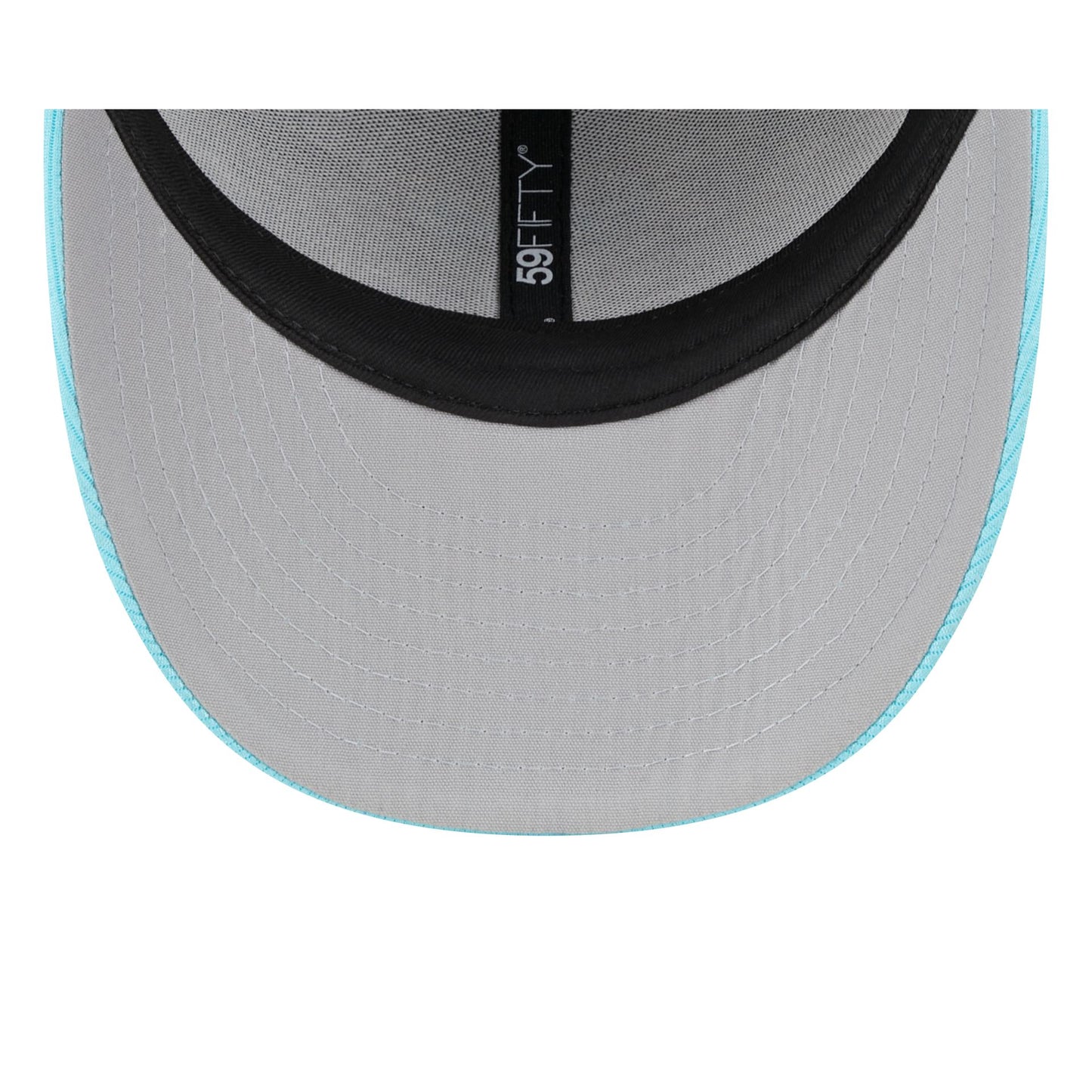 The Arizona Diamondbacks 2025 Batting Practice Low Profile 59FIFTY Fitted Cap features an embroidered Diamondbacks logo at the front panels with a matching MLB Batterman logo at the rear. Additional details include a pivot knit fabrication, a teal visor, and a gray undervisor.