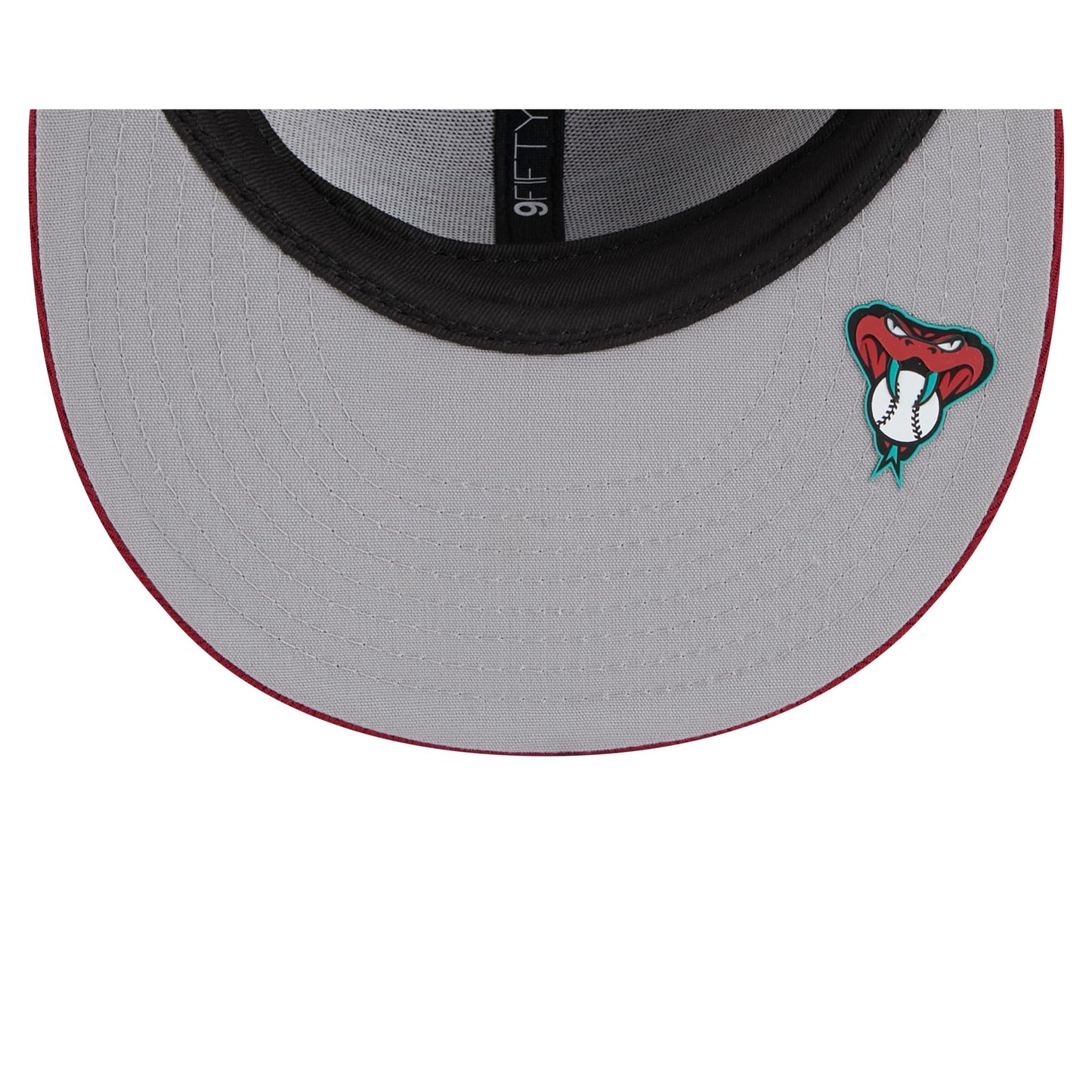 The Arizona Diamondbacks 2025 Clubhouse Alt 9FIFTY Snapback features an embroidered Diamondbacks alternate logo at the front panels with a dashmark mesh fabrication throughout. Additional details include a snapback closure at the rear and a silicone logo on a gray undervisor.