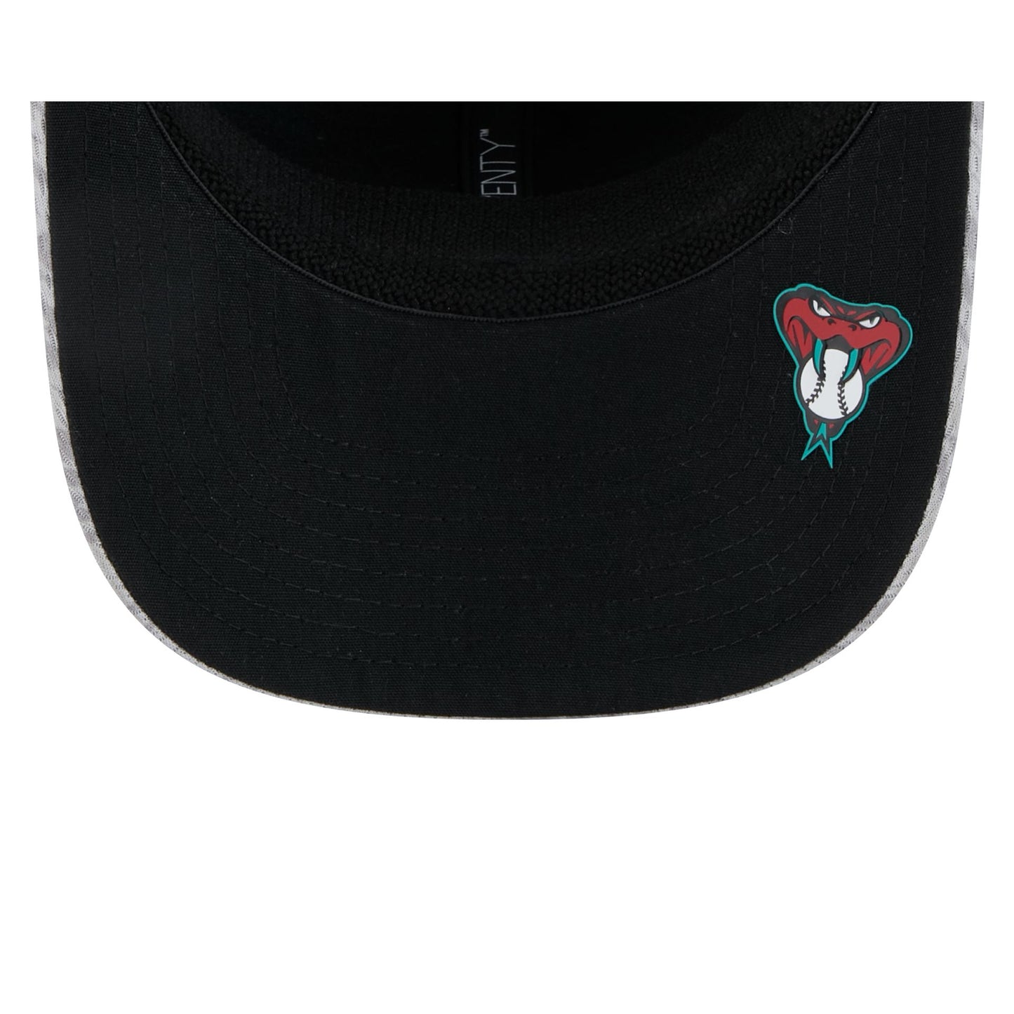 The Arizona Diamondbacks 2025 Clubhouse Gray 9SEVENTY Stretch-Snap Cap features an embroidered Diamondbacks logo at the front panels with a matching MLB Batterman logo above a snapback closure at the rear and a dashmark mesh fabrication throughout. Additional details include a silicone team tag on the right-wear side and team logo on the undervisor.
