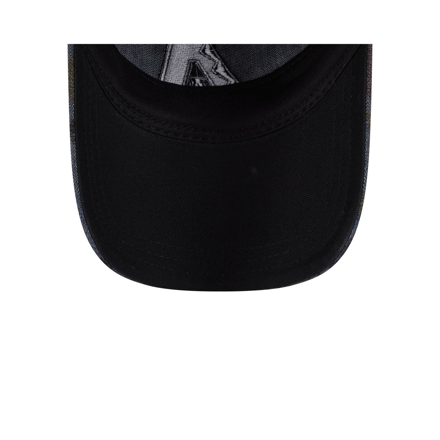 The Arizona Diamondbacks Aztec Pattern 9TWENTY Adjustable Cap features an embroidered Diamondbacks logo at the front panels against a specialty Japanese milled printed cotton Aztec fabric from Three Looms Japan Fabrics throughout the cap. Additional details include an adjustable D-Ring closure at the rear and a black undervisor.