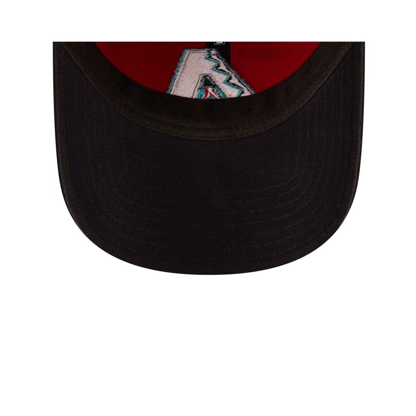 The Arizona Diamondbacks Core Classic Red 9TWENTY Adjustable Cap features an embroidered Diamondbacks logo at the front panels with a woven tab displaying the team logo on an adjustable closure at the rear and a black undervisor.