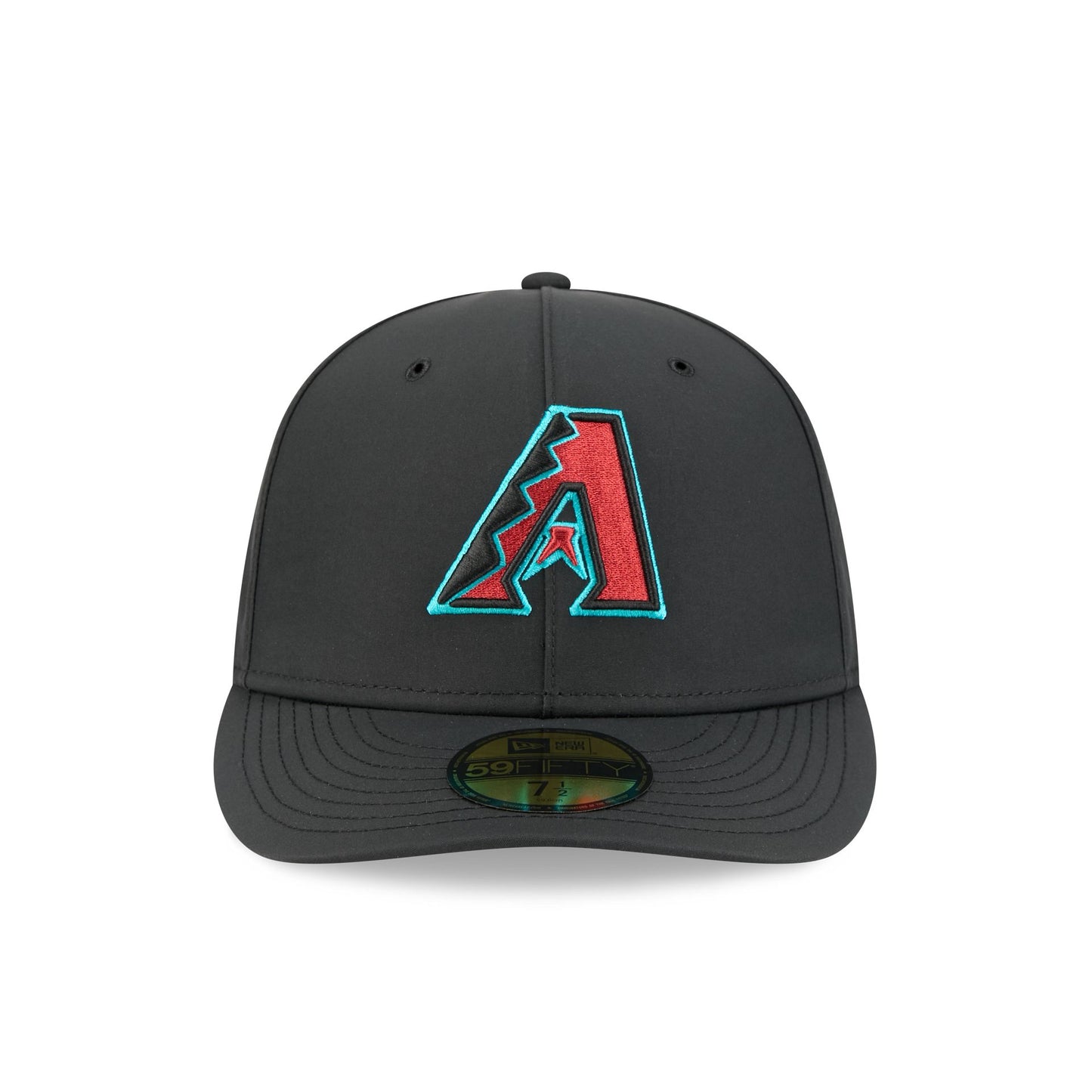 The Arizona Diamondbacks GORE-TEX 59FIFTY Fitted Cap features an embroidered Diamondbacks logo at the front panels with a metallic sheen silicone New Era Flag logo and GORE-TEX logo at the left-wear side. Additional details include the MLB Batterman logo at the rear, a gray undervisor, and a polyester fabrication throughout the cap. It is waterproof, breathable, and lightweight. This 59FIFTY comes with a pre-curved visor.