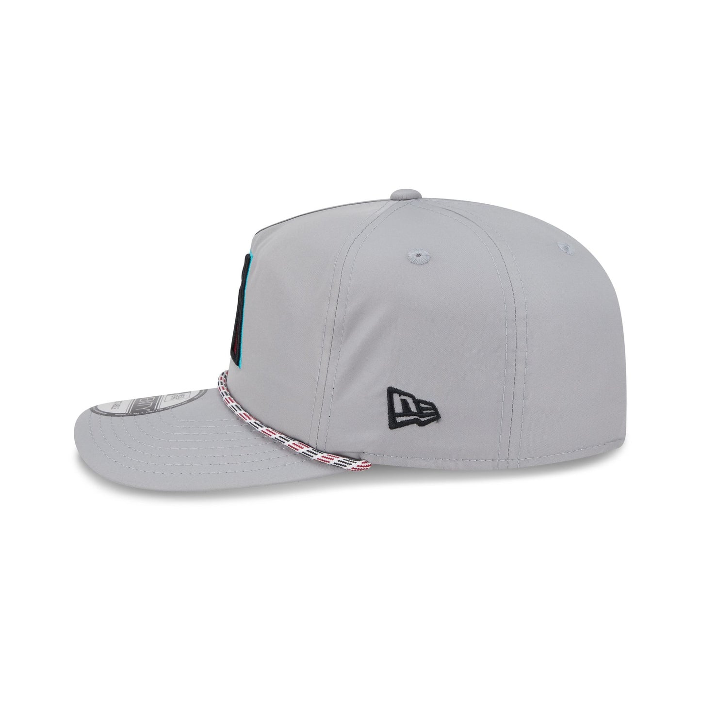 The Arizona Diamondbacks Gray 19TWENTY Snapback features an embroidered Diamondbacks logo and team color rope at the front with a snapback closure at the rear and a gray undervisor.