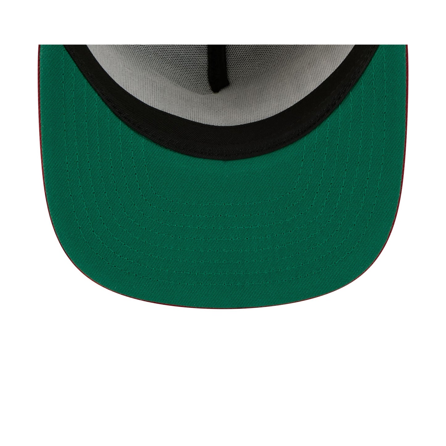 The Arizona Diamondbacks Summer Derby 59FIFTY A-Frame Fitted Cap features an embroidered Diamondbacks wordmark over team color stripes at the front panels with a matching MLB Batterman logo at the rear. Additional details include a 2011 All-Star Game patch at the right-wear side, a red visor, and a green undervisor.